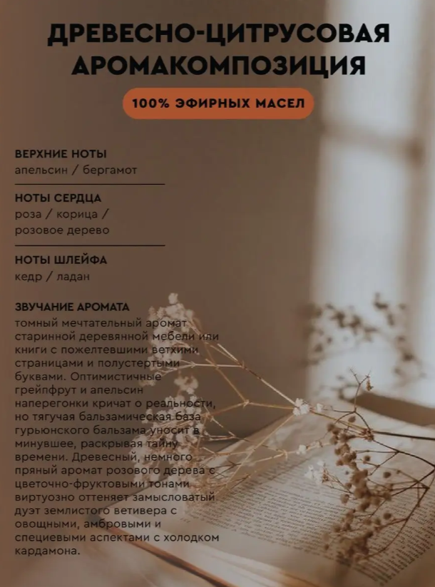 Мечтательный томный аромат сродни старинной деревянной мебели или книге с пожелтевшими ветхими страницами и полустертыми буквами, они пришли из прошлого и доживают свой век в заброшенном покосившемся доме на окраине, тихо хранят свою тайну.
