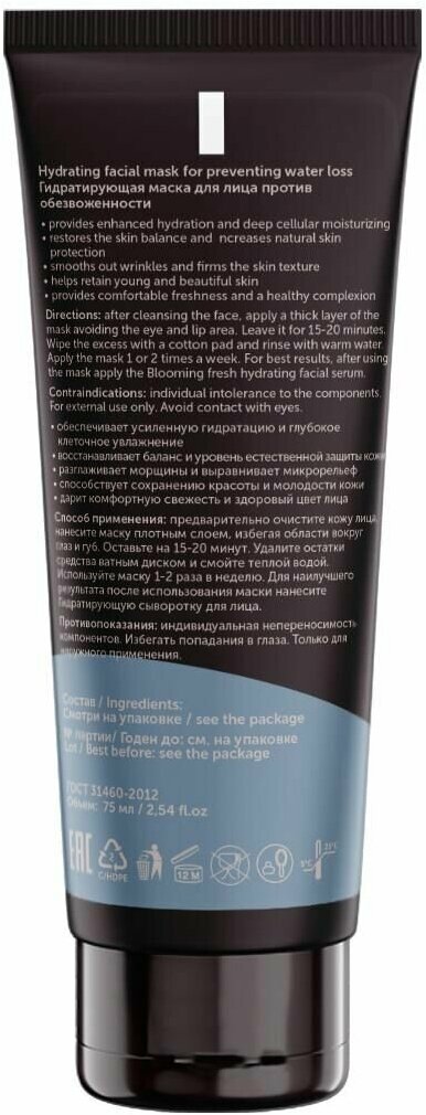 Гидратирующая маска против обезвоженности BLOOMING FRESH обеспечивает интенсивное увлажнение, восстановление и тонизирование кожи, проникает с в глубокие слои, насыщает каждую клеточку влагой, а также «стирает» следы усталости и нехватки сна.
