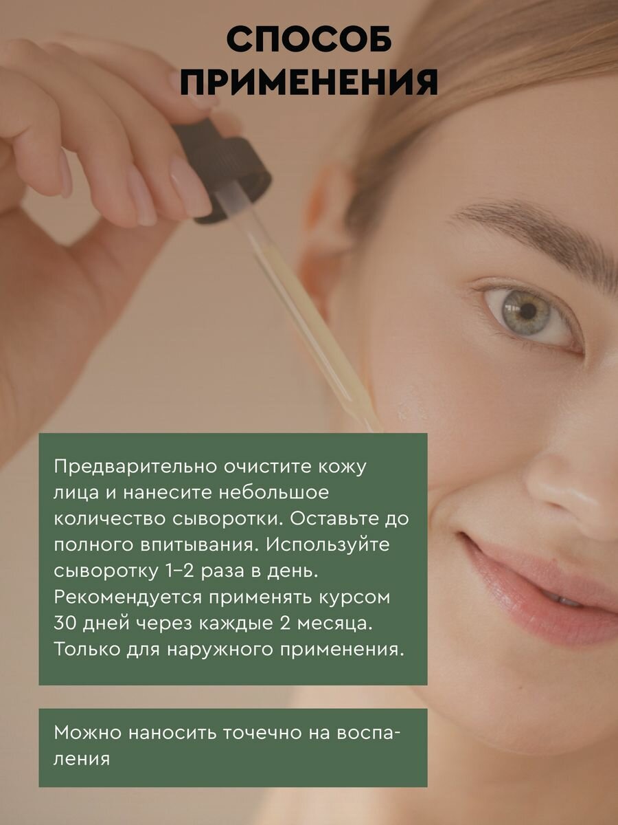 | Способ применения | На чистую кожу нанесите 1 пипетку сыворотки, и похлопывающими движениями распределите по коже, обходя зону вокруг глаз. Используйте 1 раз в сутки. |