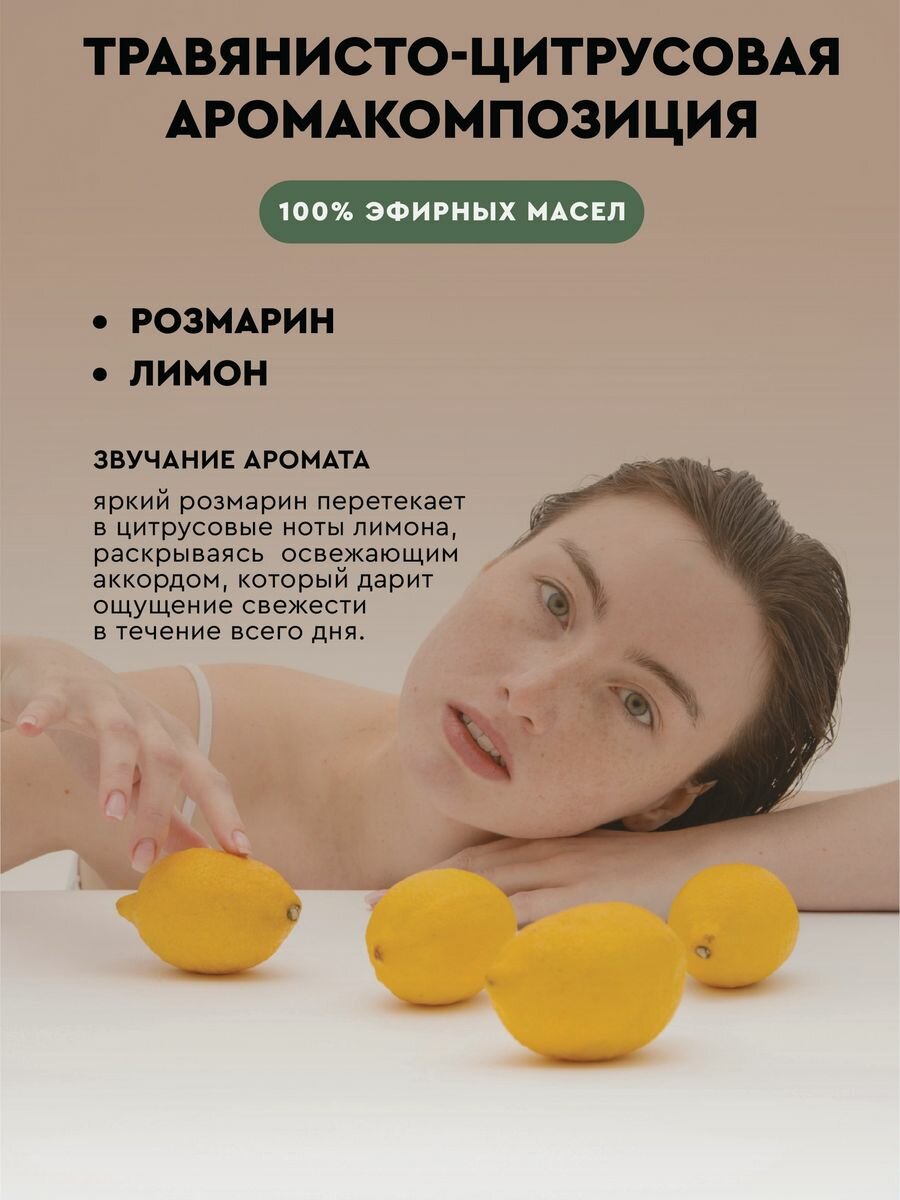 Эфирные масла лимона и розмарина — заметно сужают поры и устраняют жирный блеск, улучшают цвет и гладкость лица.