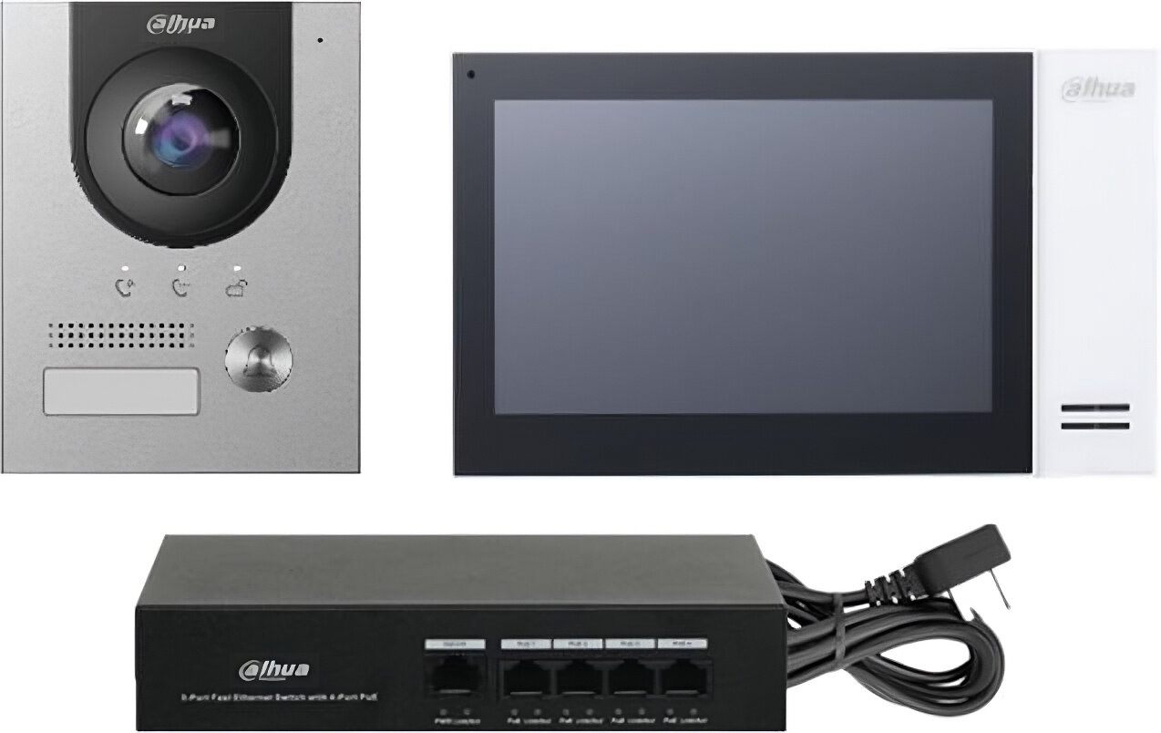 Комплект Dahua DHI-VTO2201F-P+DHI-VTH2421FW-P+DH-PFS3005-4ET-36E DHI-KTP01L(F)