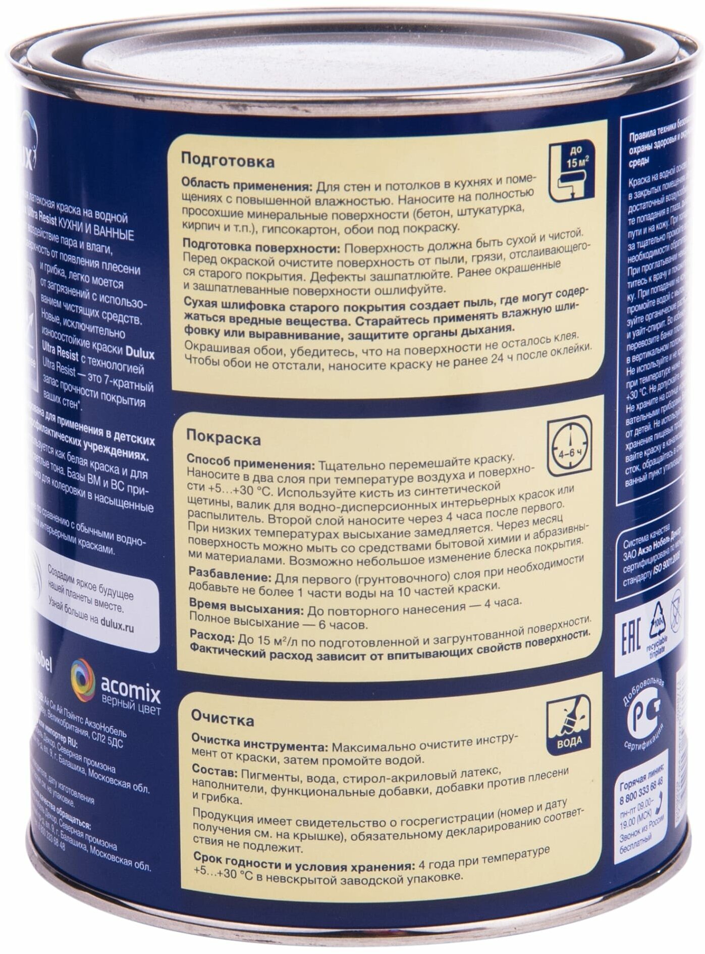 Краска Dulux Ultra Resist Кухня и Ванная BW белая 5 л