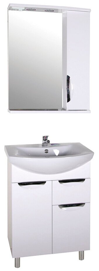 Зеркало Мессина-60. Фасад изготовлен из МДФ и пленки, что говорит о влагостойкости изделия. Плавное закрывание дверей шкафчика. Ручки - хром. Галогеновый светильник с выключателем.