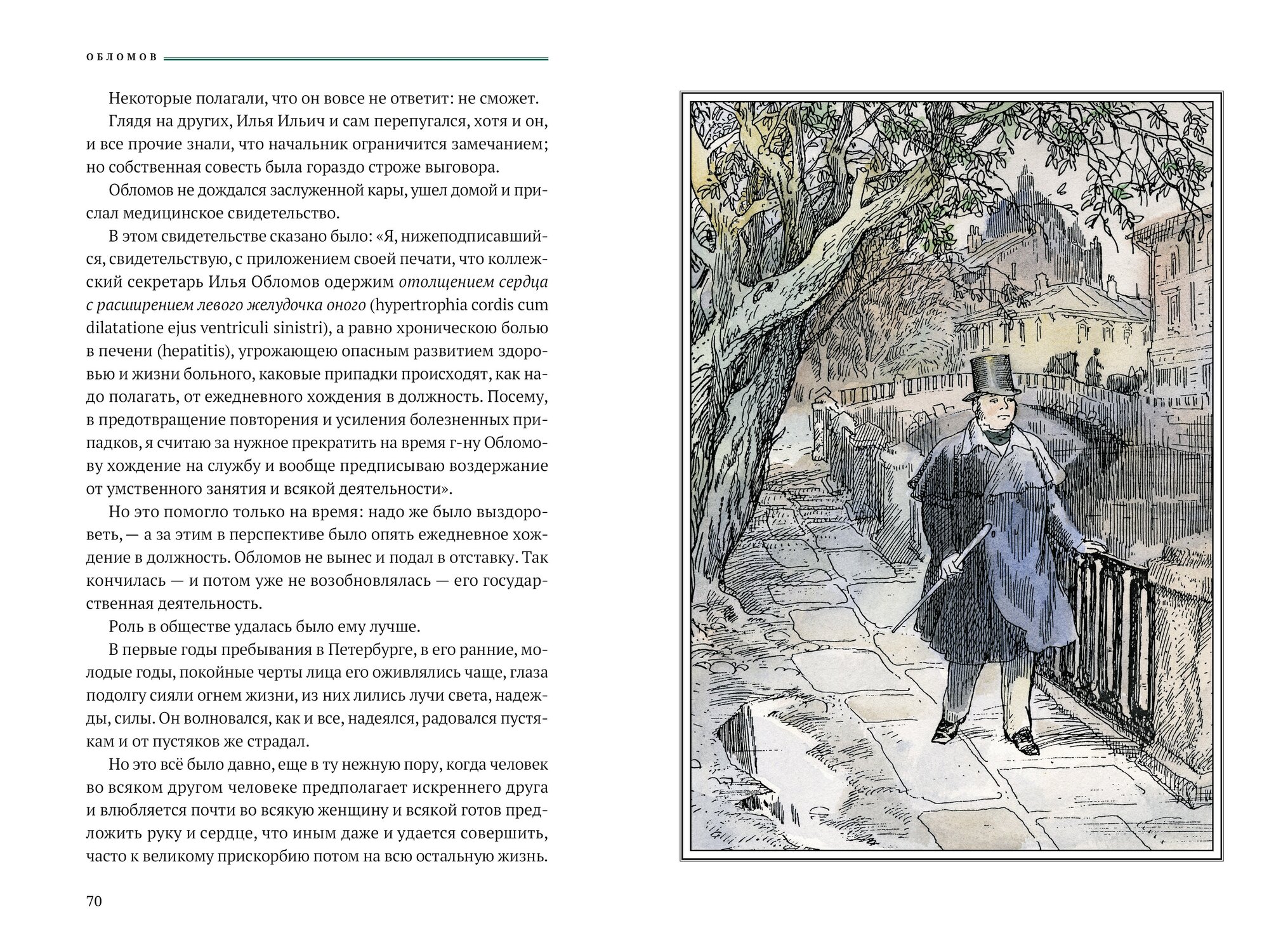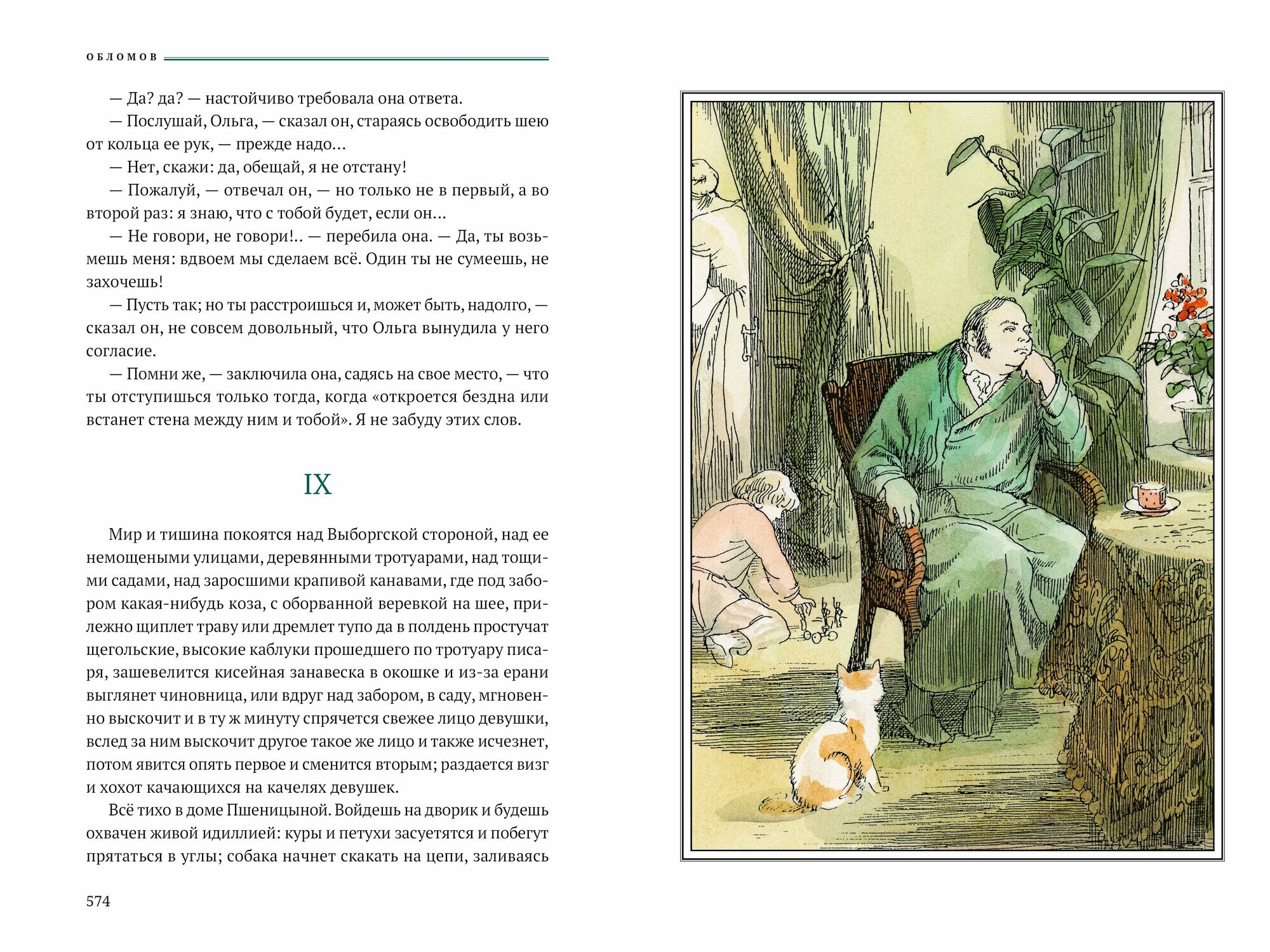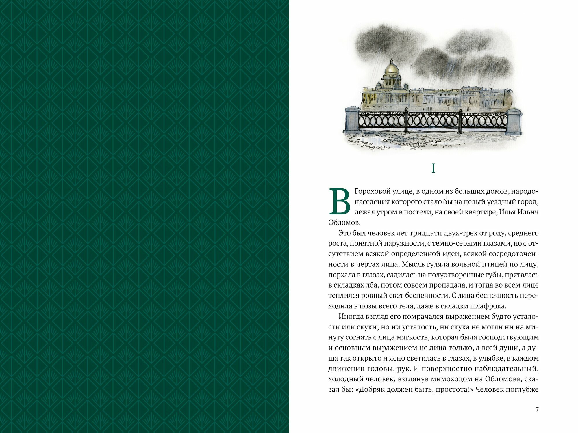 Искала книгу для ребенка. По программе надо читать «Обломова». Книга большая, хотелось, чтобы не отпугнул объем. В сокращении знакомиться не дело. Поэтому искала с иллюстрациями, лучше цветными. Устанешь от текста, картинки можно порассматривать. Только хотелось, чтобы рисунки не детские были. Когда увидела обложку этой книги, сразу поняла: вот она. Они ее издали очень красиво. Бумага белая, буквы большие, рисунки забавные. Очень надеюсь, что сыну понравится.