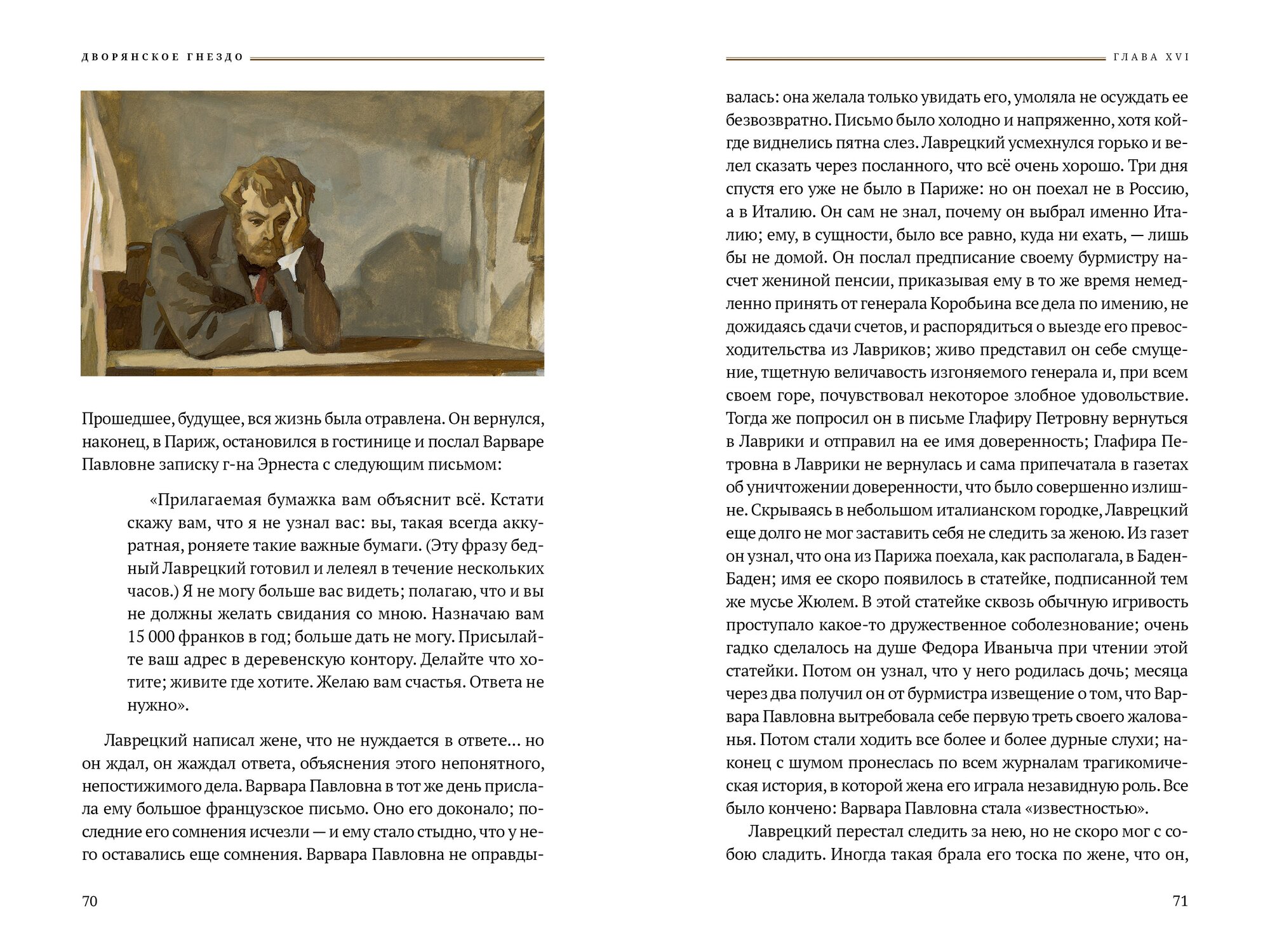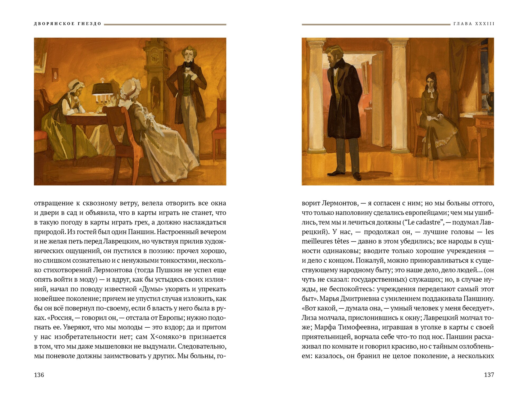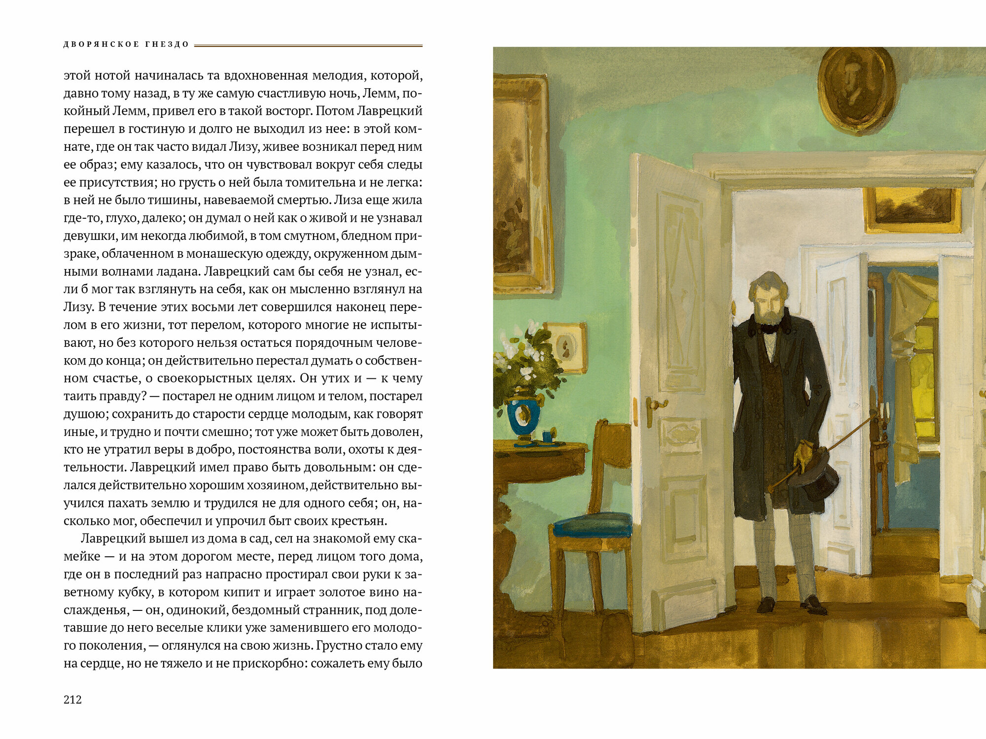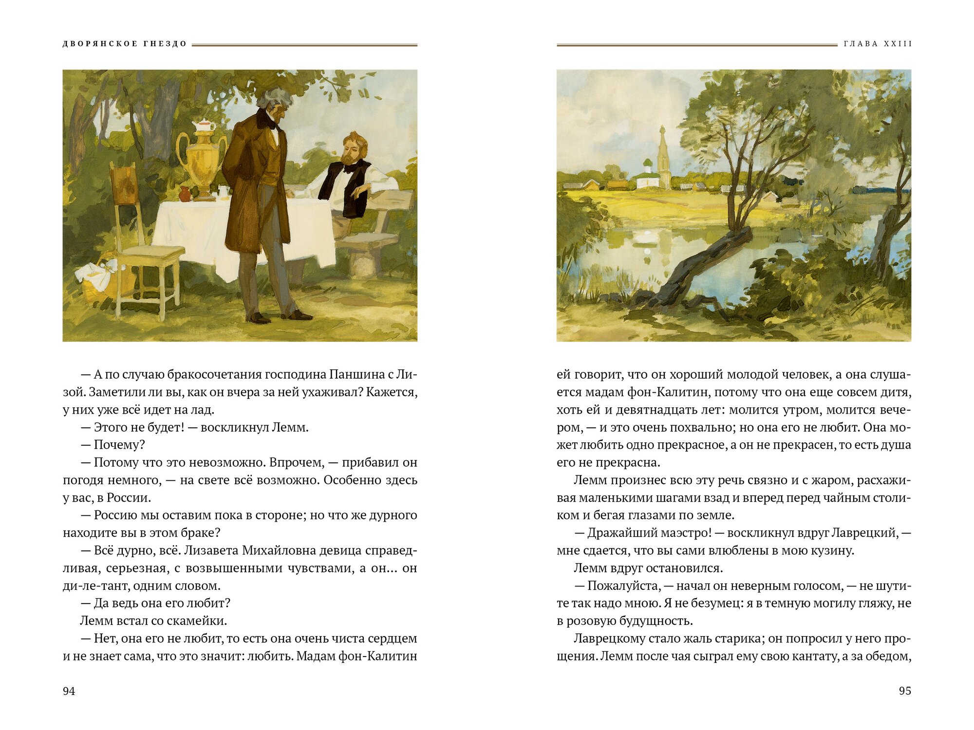 Иллюстрации к произведениям Тургенева создавали самые разные художники. Владимир Панов—из числа лучших. Его циклы обширные. К сожалению, они издаются реже, чем хотелось бы. Поэтому вдвойне радостно, что в этой книге собраны рисунки к двум романам. Получаешь искреннюю радость от мастерства художника. Издали хорошо. Бумага белая, плотная. Оттенки цвета видны. Изящная книга, станет хорошим подарком детям