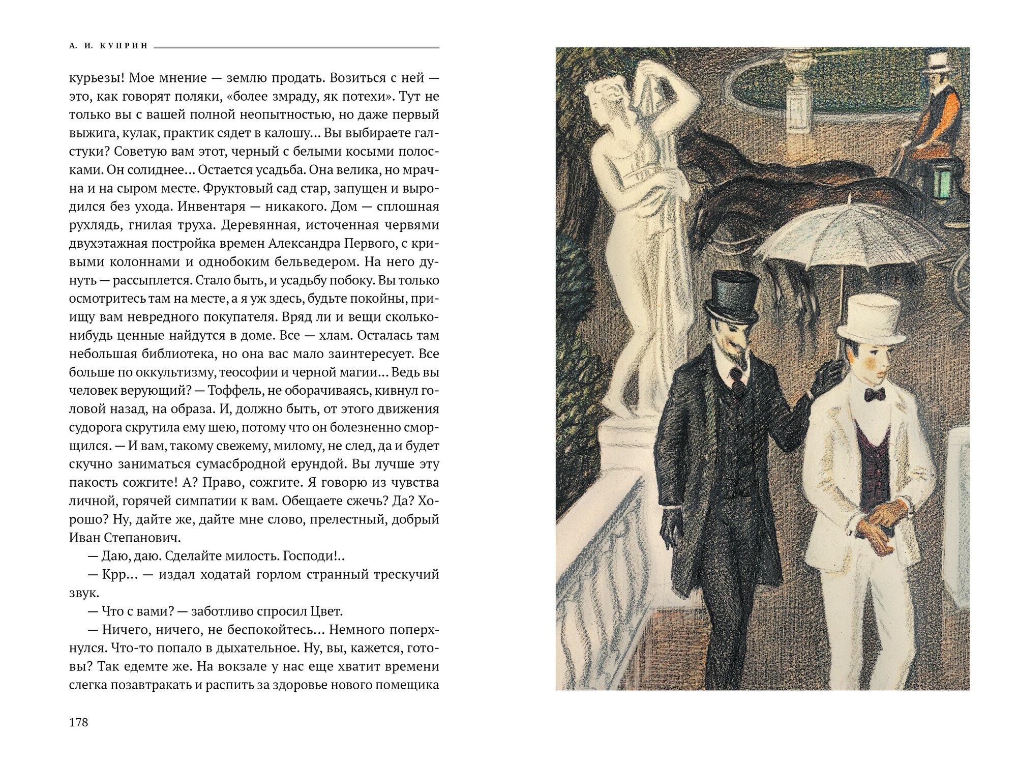 Иллюстрации к произведениям Куприна выполнены Юрием Соломоновичем Гершковичем (1938-2013). Художник очень точно почувствовал основные настроения купринских героев, передав их в позах, жестах, эмоциональных состояниях изображенных персонажей.