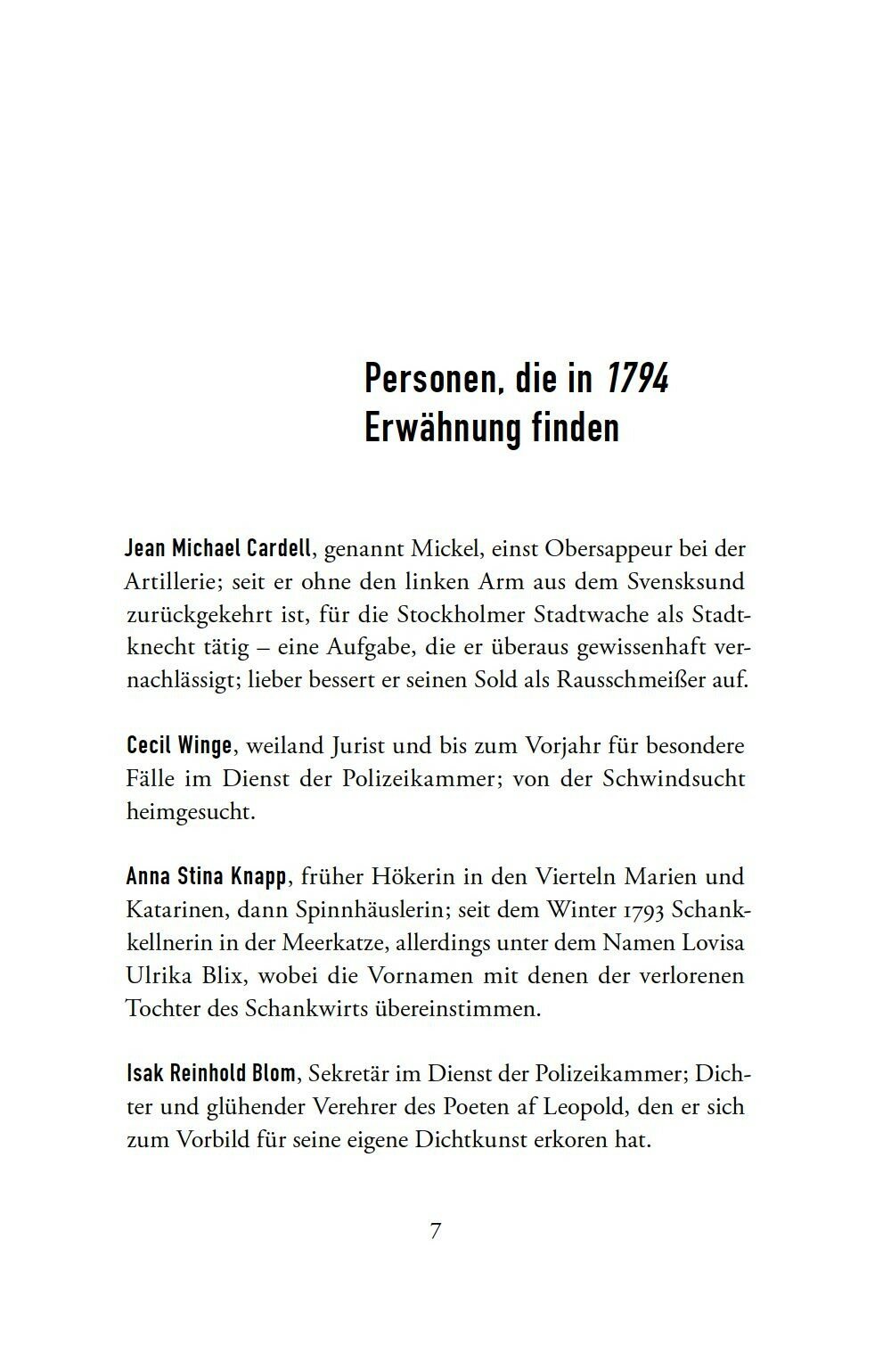 Ermittler Jean Michael Cardell ist am Ende seiner Krafte. Er schafft es kaum, die Ereignisse des Vorjahres zu verarbeiten, da meldet sich eine Frau bei ihm. Ihre Tochter wurde grausam ermordet, der Ehemann als Tater identifiziert. Doch dieser Fall ist wesentlich verstrickter, als es den Anschein hat. Und so begibt sich Jean Michael Cardell gemeinsam mit dem hochintelligenten Bruder von Cecil Winge in die schmutzige Unterwelt des historischen Stockholms, in dem die Gosse gleich neben dem Glanz wartet.