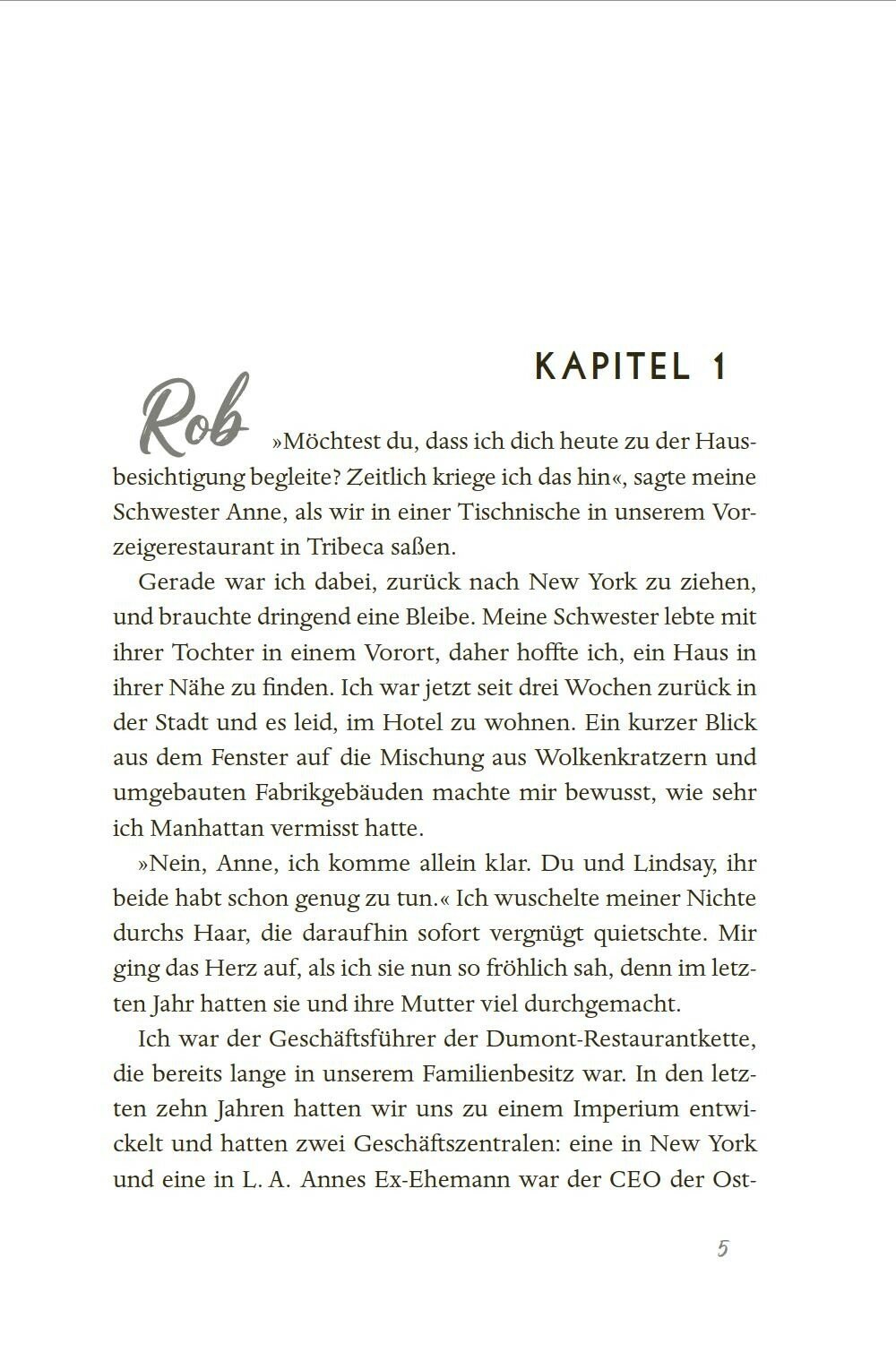 Restaurantbesitzer Robert hat ein Handchen fur erfolgreiche Geschafte. In New York will er sein Business weiter vorantreiben, eine Beziehung passt hingegen nicht in seinen vollen Terminkalender. Doch als er seine neue Nachbarin Skye kennenlernt und mit ihr gluhende Blicke austauscht, ist er sofort hingerissen von der engagierten Geschaftsfrau. Immer wieder muss er an sie denken und er erkennt: Sie ist die Eine. Aber Skye hat ihre Grunde, warum sie ihn nicht zu nah an sich heranlasst. Kann Robert die Distanz uberwinden und doch noch Skyes Herz gewinnen?