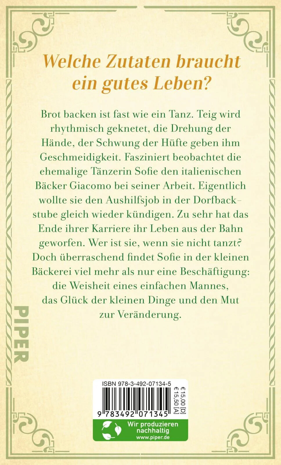 Brot backen ist fast wie ein Tanz. Teig wird rhythmisch geknetet, die Drehung der Hande, der Schwung der Hufte geben ihm Geschmeidigkeit. Fasziniert beobachtet die ehemalige Tanzerin Sofie den italienischen Backer Giacomo bei seiner Arbeit. Eigentlich wollte sie den Aushilfsjob in der Dorfbackstube gleich wieder kundigen. Zu sehr hat das Ende ihrer Karriere ihr Leben aus der Bahn geworfen. Wer ist sie, wenn sie nicht tanzt? Wer wird sie lieben, wenn sie nicht mehr auf der Buhne strahlt? Doch uberraschend findet Sofie in der kleinen Backerei viel mehr als nur eine Beschaftigung: die Weisheit eines einfachen Mannes, das Gluck der kleinen Dinge und den Mut zur Veranderung.