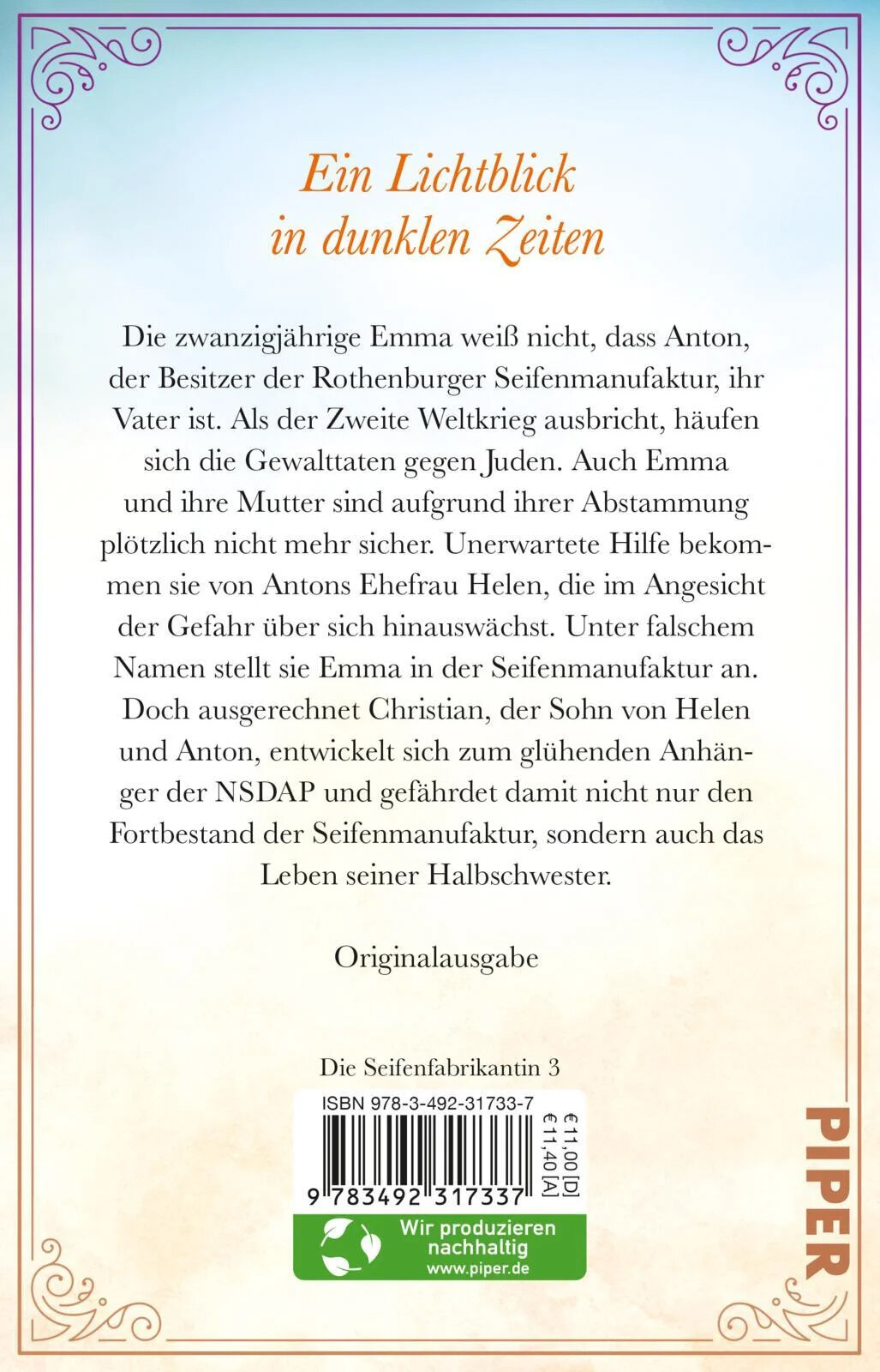 Die 20-jahrige Emma wei? nichts von ihrem Vater Anton, der eine Seifenmanufaktur besitzt und heimlich ihre Ausbildung finanziert. Als der Zweite Weltkrieg ausbricht, geraten Emma und ihre Mutter aufgrund ihrer judischen Abstammung in Gefahr. Unerwartete Hilfe bekommen sie von Antons Ehefrau Helen. Unter falschem Namen wird Emma in der Seifenmanufaktur angestellt. Doch ausgerechnet ihr Halbbruder Christian entwickelt sich zum gluhenden Anhanger der NSDAP. Das Gluck der Familie droht zu zerbrechen …