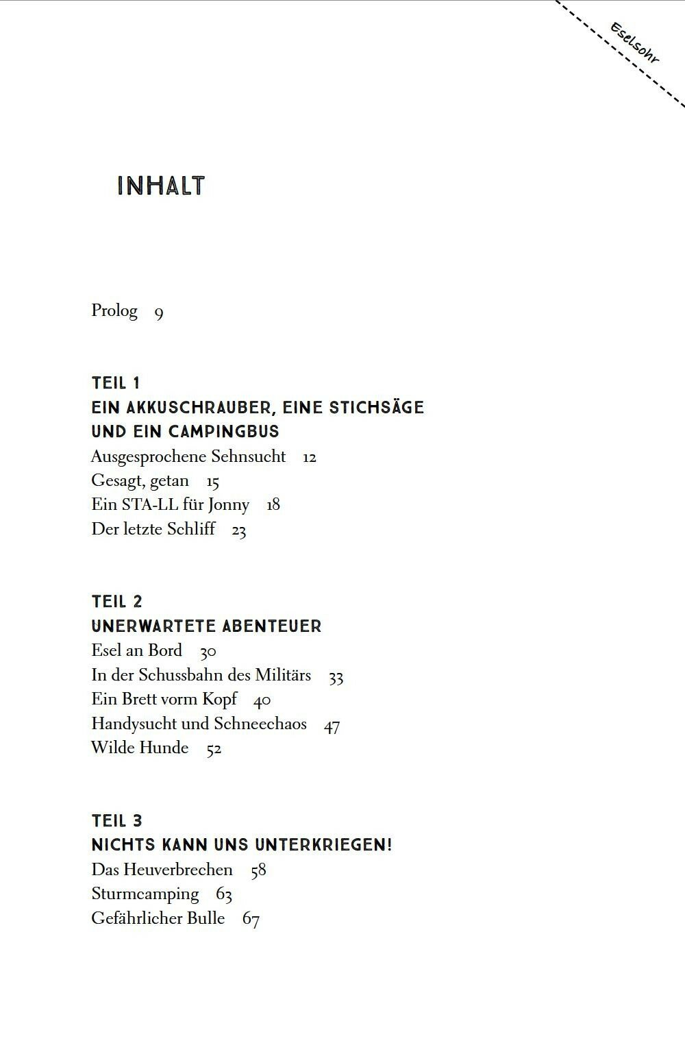 Doch bevor es so weit ist, mussen die zwei Freunde allerhand Abenteuer meistern. Gemeinsam bewandern sie schwindelerregende Steilkusten und einsame Strande, entdecken verwunschene Walder, eiskalte Gebirge und Europas einzige Wuste, die vor allem Jonny besonders gut gefallt. Dabei treffen sie auf begeisterte Bulli- und Eselfans, lassen sich von alternativen Lebensentwurfen inspirieren und finden nach und nach ihren ganz eigenen Rhythmus on the road.