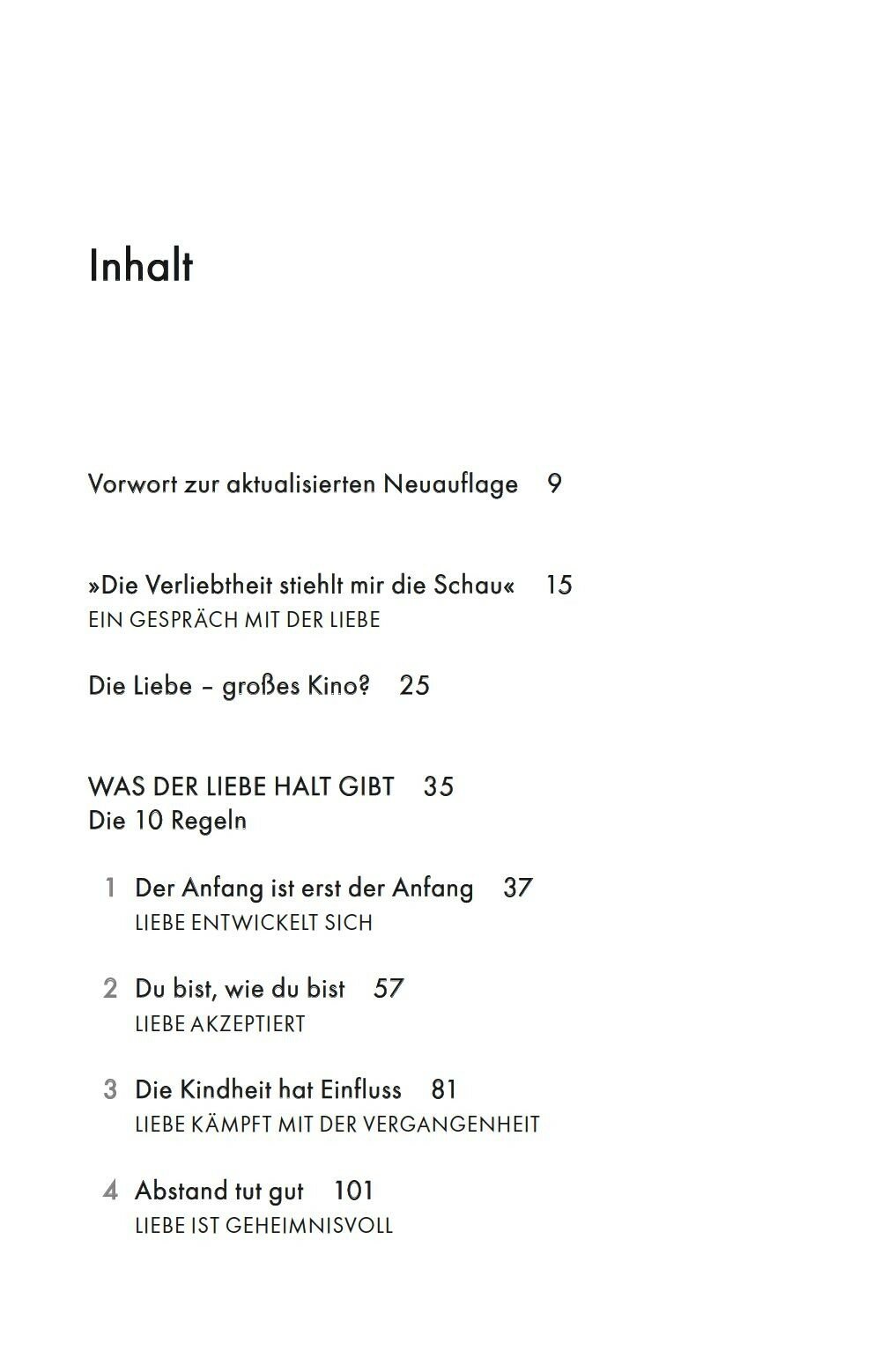Gro?e Liebe und ewiges Gluck – das scheint angesichts der Zahl gescheiterter Beziehungen kaum moglich zu sein. Paare haben oft keine Vorstellung davon, welche Probleme und Prufungen auf zwei Liebende zukommen und welche davon unausweichlich und vollig normal sind. Ursula Nuber zeigt, dass es anders geht, und bringt auf den Punkt, was Paare wissen mussen, um ihre Beziehung zu erhalten und zu festigen. Sie beschreibt, was Liebe wirklich ist (und womit sie oft verwechselt wird), und wie die Partnerschaft eine solide Basis bekommt.
