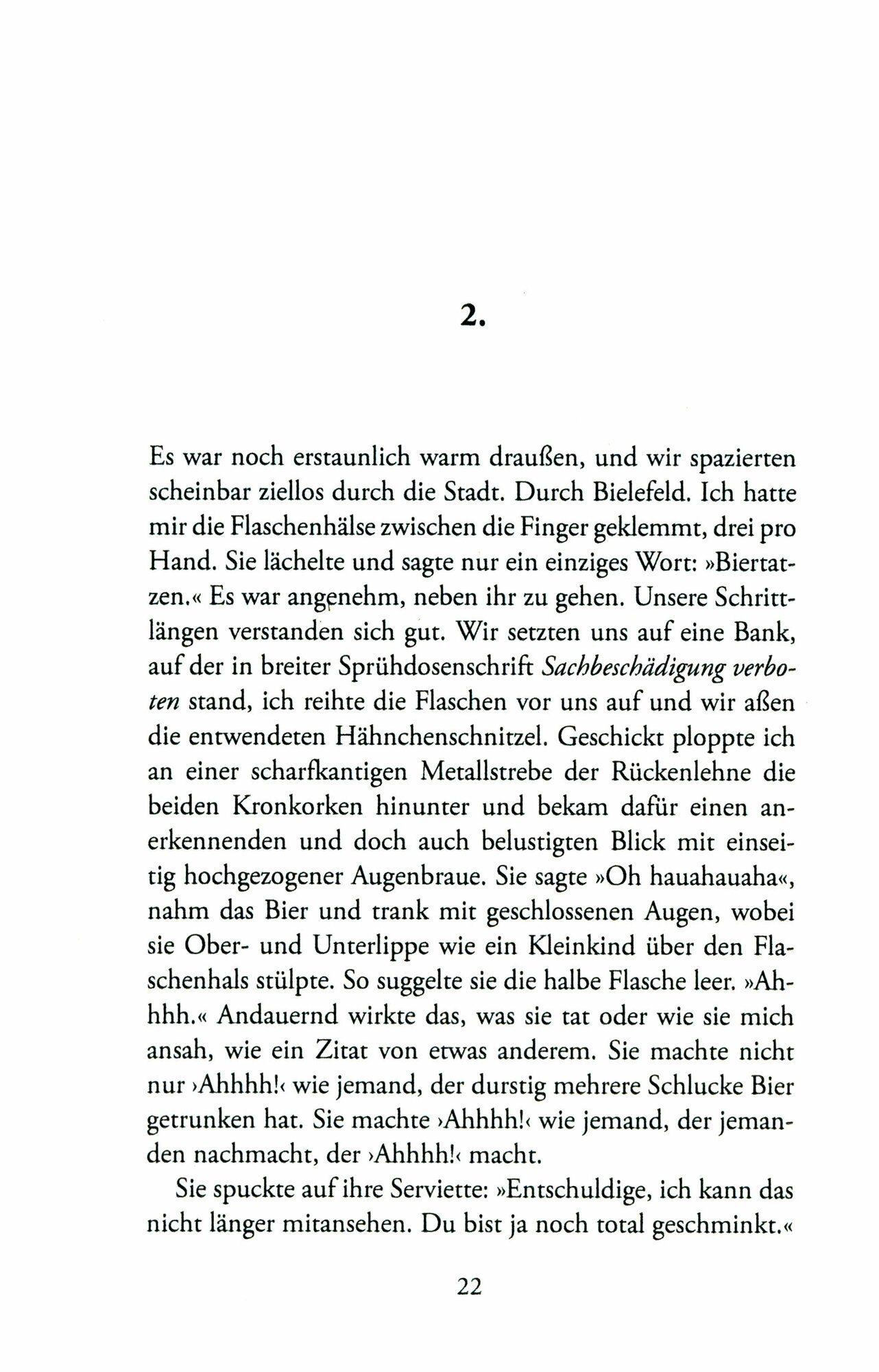 Nach einer Kindheit auf dem Anstaltsgelande einer Psychiatrie, einem Austauschjahr in Wyoming und einer verstorenden Zeit an der hochangesehenen Otto-Falckenberg-Schule landet der Erzahler nun als stabil erfolgloser Schauspieler in der tiefsten Provinz.Dort begegnet er Hanna, einer ehrgeizigen und blitzgescheiten Studentin. Es ist die erste gro?e Liebe seines Lebens. Wenige Wochen spater tritt Franka in Erscheinung, eine Tanzerin mit unwiderstehlichem Hang, die Nachte durchzufeiern und sich massieren zu lassen. Das kann der Erzahler wie kein Zweiter, da er an der Schauspielschule mehr uber Massagen als uber die Schauspielerei gelernt hat. Und dann ist da auch noch Ilse, eine fullige Backersfrau, in deren Backstube er sich so glucklich fuhlt wie sonst nirgends. Die Gleichzeitigkeit der Ereignisse ist physisch und logistisch kaum zu meistern. Kann das gut gehen? Die Antwort ist: nein.