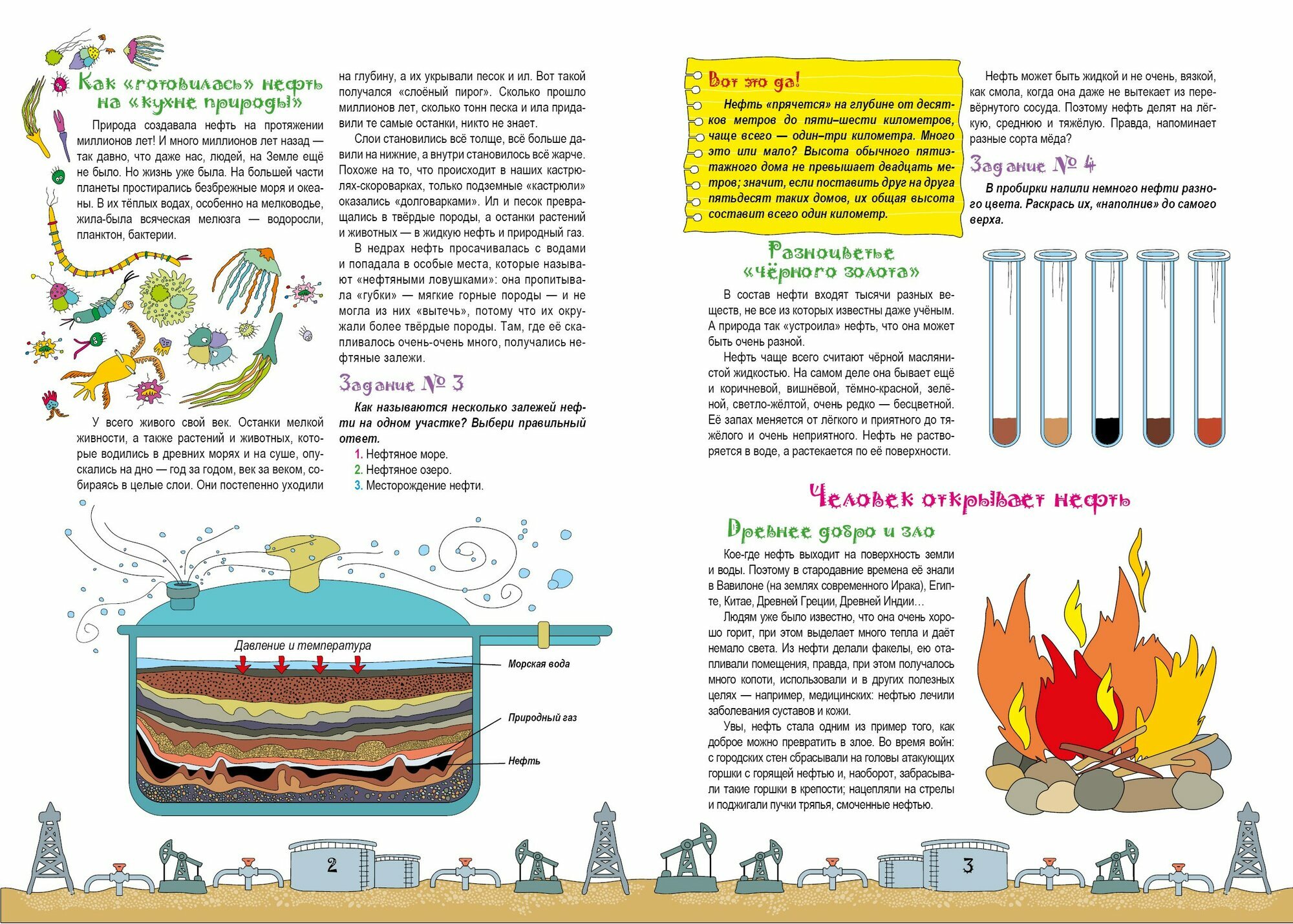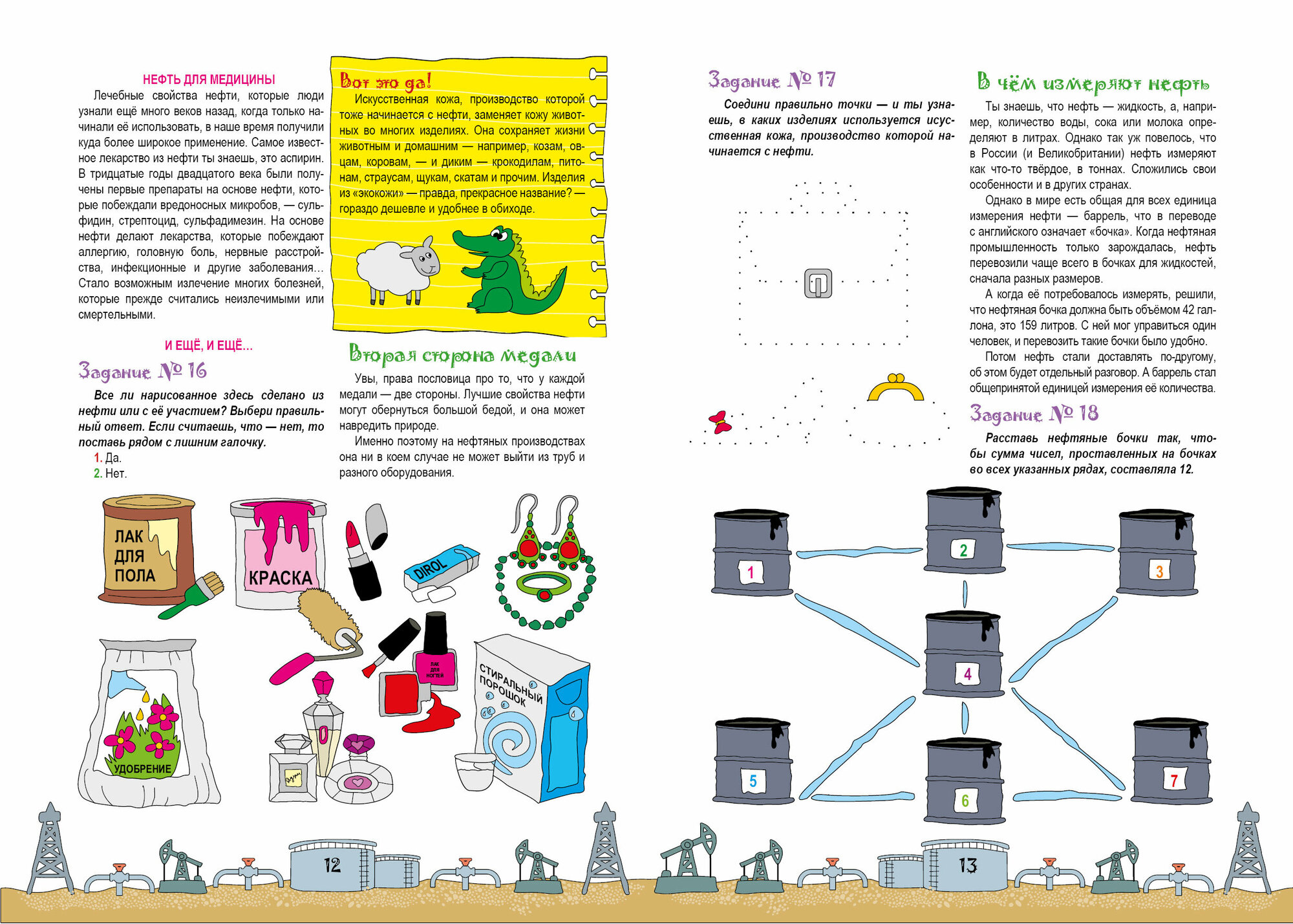 Книга способствует ранней профориентации и расширению знаний детей разных возрастов об окружающем мире. Состоит из двух частей: в первой части «О нефти» рассказывается, что это такое, о её основных свойствах, о том, как её создавала природа, об истории применения нефти людьми и её роли в современном мире. Во второй части «О нефтяной промышленности» речь идёт об отдельных отраслях – геологии и добыче нефти, о её транспортировке и переработке, сбыте нефтепродуктов, – а также об обеспечении экологической безопасности, научной составляющей, социальной значимости и прочих. Книга дополнена заданиями, помогающими маленькому читателю усвоить и расширить получаемые знания в игровой форме.