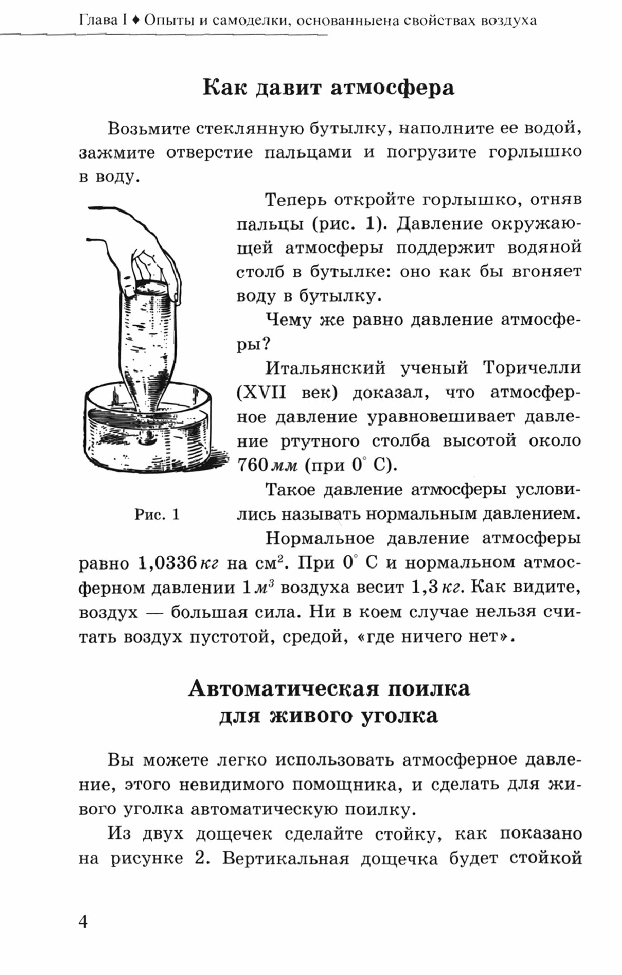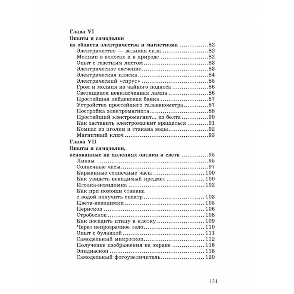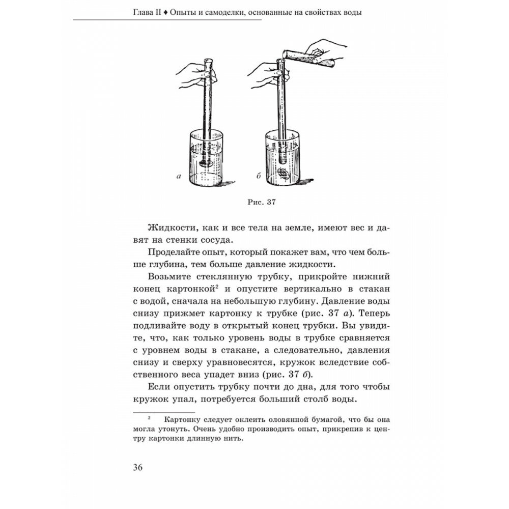 Можно ли сделать простым для школьника объяснение таких сложных физических явлений, как давление атмосферы, различные состояния воды или расширение и сжатие тел от нагревания? Автор данного сборника опытов и самоделок В. Смирнов считает, что можно - с помощью простых экспериментов, проведение которых доступно любому ученику в домашних условиях. Зная особенности атмосферного давления, можно смастерить, например, поилку для живого уголка или воздушного змея. Свойства сообщающихся сосудов подскажут, как организовать фонтан на столе, а кораблик или водяную мельницу можно легко построить, используя знания о силе воды.