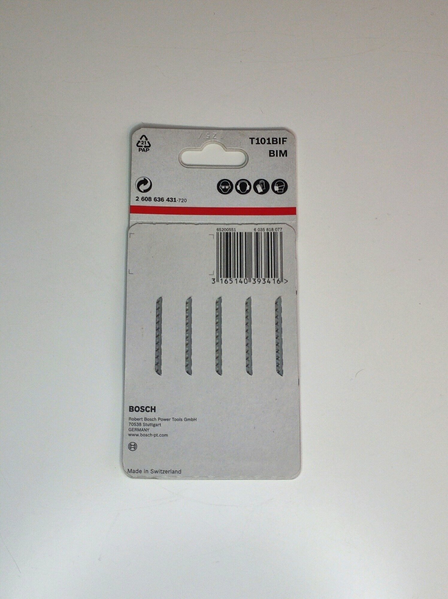 Полотно T101ВIF от немецкой компании Bosch имеет специальные шлифовальные зубья, расположенные под свободным углом на расстоянии 1,7 мм друг от друга. Такая особенность позволяет обеспечивать качественный рез ламината. Тип крепления полотна - хвостик с одним упором.