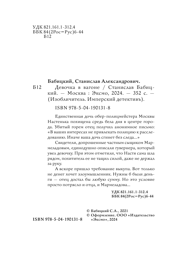 Сервис сравнения цен СкидкаГИД предлагает сравнить цены на товар «Книга: Девочка в вагоне (Бабицкий Станислав Александрович); Эксмо-Пресс, 2024»