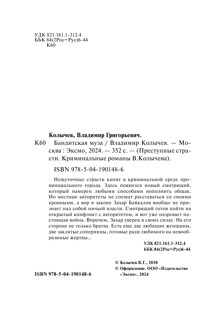 Книга: Бандитская муза (Колычев Владимир Григорьевич); ООО "Издательство "Эксмо", 2023