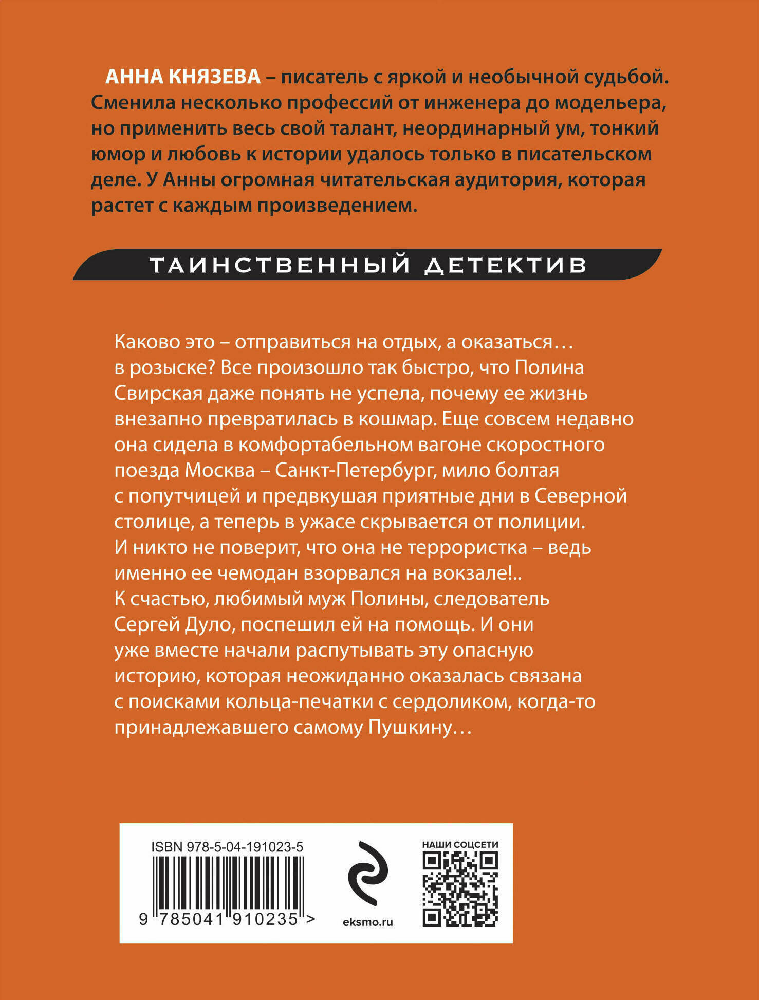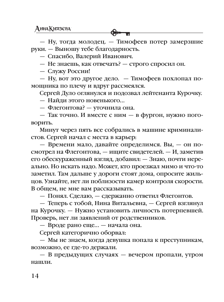 В остросюжетных романах Анны Князевой расследуются преступления, следы которых уводят в прошлое и позволяют пролить свет на его загадки. Вслед за героями вы отправитесь навстречу старинным тайнам и увлекательным приключениям!
