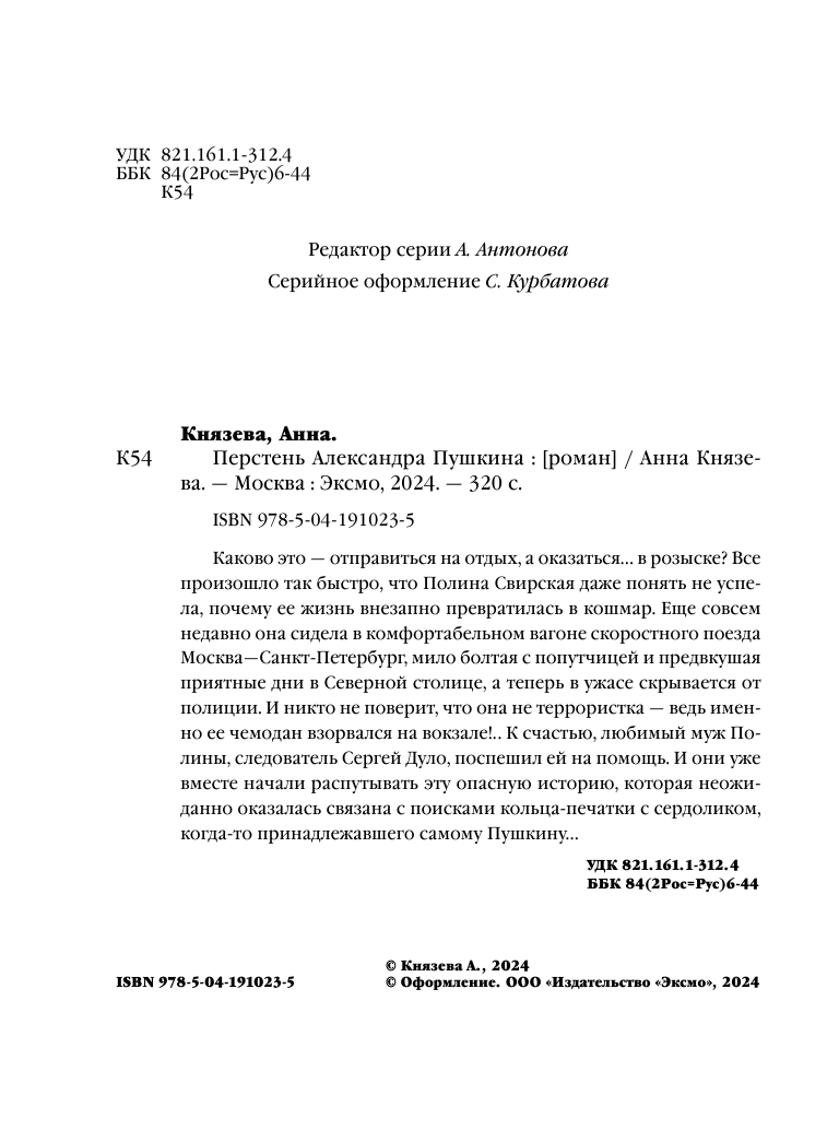 Перстень Александра Пушкина (Анна Князева); Эксмо, Редакция 1, 2023