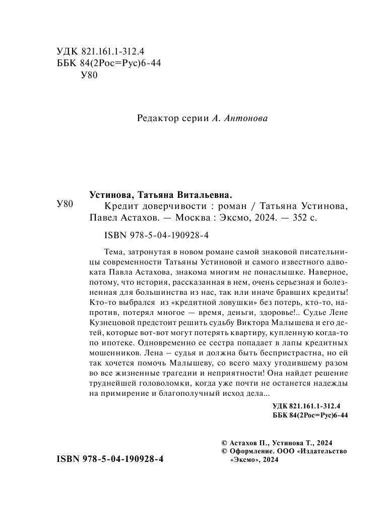 Книга: Кредит доверчивости (Устинова Татьяна Витальевна, Астахов Павел Алексеевич); ООО "Издательство "Эксмо", 2024