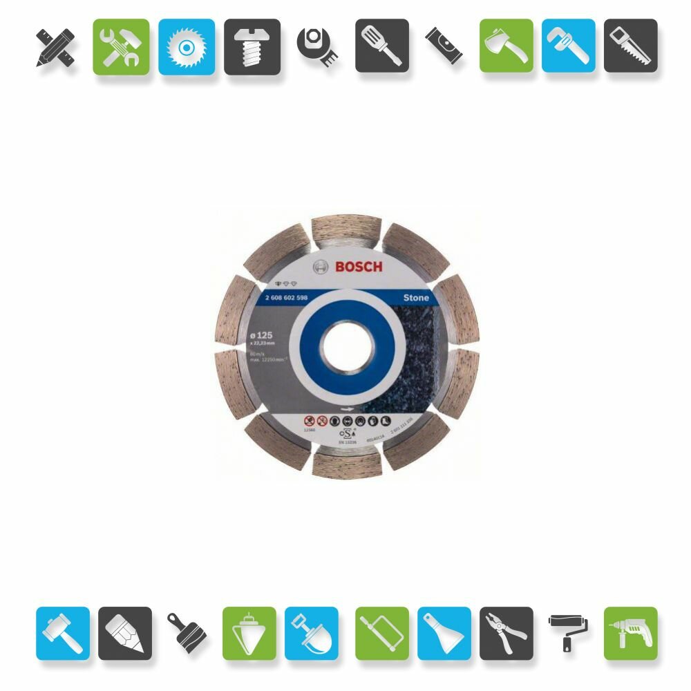 Профессиональный отрезной алмазный диск BOSCH по камню диаметром 125 мм и с посадочным отверстием 22.23 мм от всемирно известного производителя электроинструмента и расходных материалов к нему. Диск предназначен для обработки камня при облицовочных работах, прорезки проёмов в монолитных стенах, демонтажа каменных и бетонных конструкций. Устанавливается на ручные углошлифовальные и компактные камнерезные машины с частотой вращения шпинделя до 11000 об/мин.