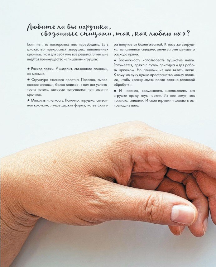 Подробные пошаговые мастер-классы, каждый этап работы в которых проиллюстрирован и снабжен понятным объяснением. И вот уже из-под ваших спиц появляется трогательный «дружочек», которого можно носить в кармашке сумки, держать на рабочем столе или подарить близкому человеку.
