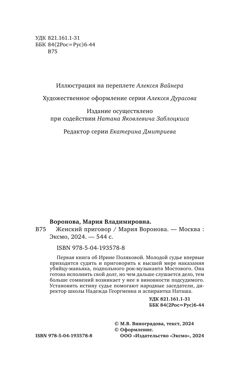 Книга: Женский приговор (Воронова Мария Владимировна); ООО "Издательство "Эксмо", 2023