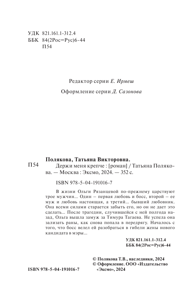 Книга: Держи меня крепче (Полякова Татьяна Викторовна); ООО "Издательство "Эксмо", 2023