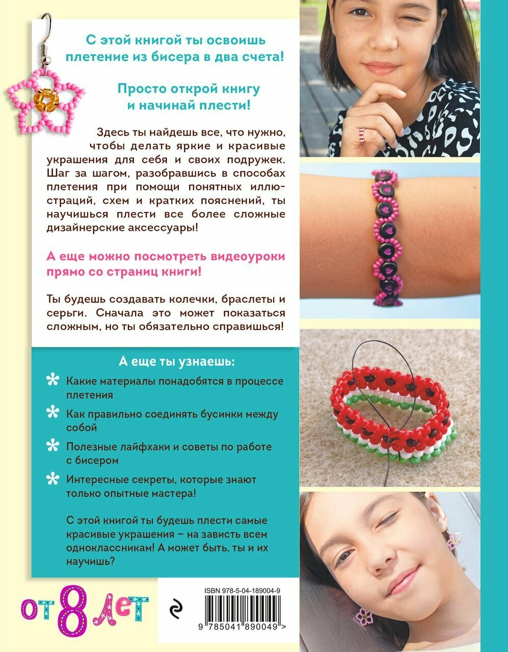 Внутри тебя ждут пошаговые инструкции, яркие иллюстрации и понятные схемы. Шаг за шагом ты освоишь все тонкости плетения из бисера и научишься плести все более сложные дизайнерские аксессуары!