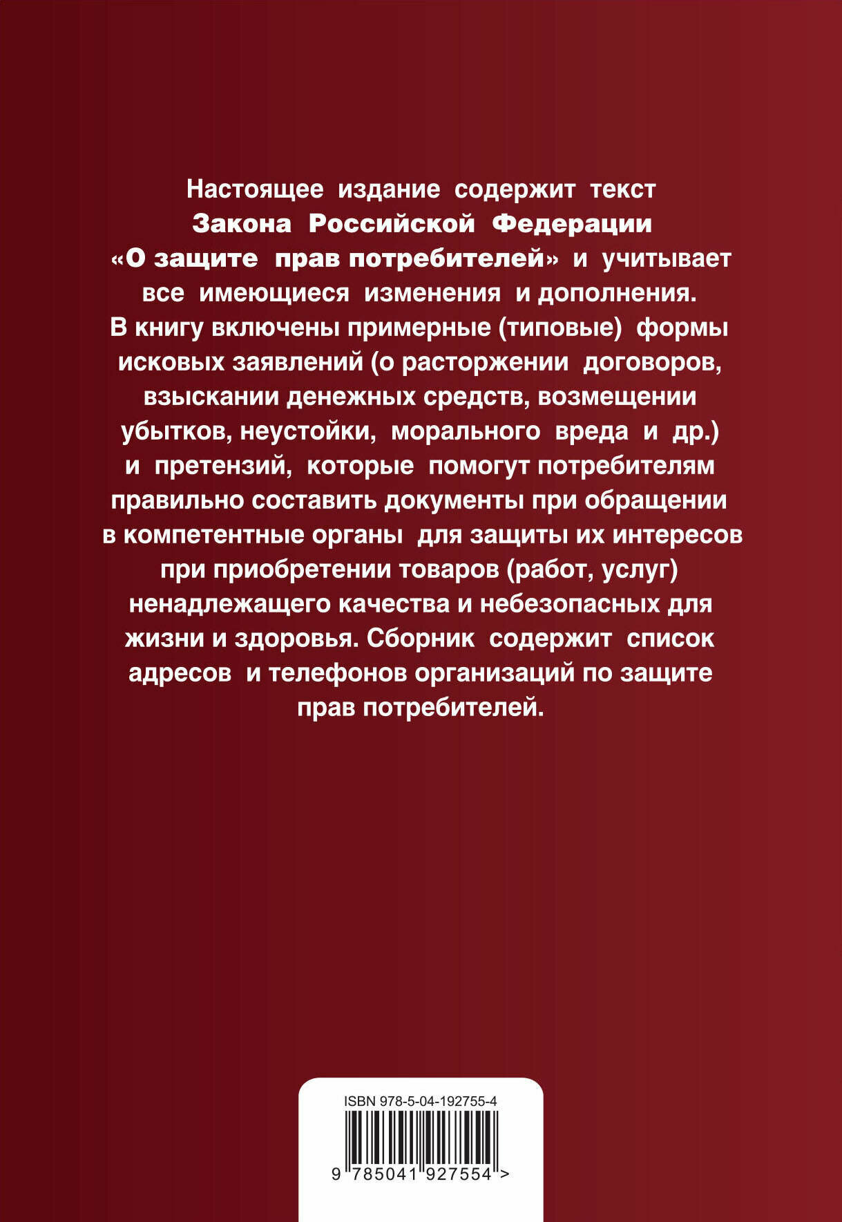Удобное издание для потребителей: ссодержит текст Закона РФ «О защите прав потребителей» со всеми изменениями и дополнениями по состоянию на 2024 год, а также примерные (типовые) формы исковых и других заявлений (о расторжении договоров, взыскании денежных средств, возмещении убытков, неустойки, морального вреда), которые помогут потребителям правильно составить документы при обращении в компетентные органы для защиты своих интересов при приобретении товаров ненадлежащего качества и небезопасных для жизни и здоровья.