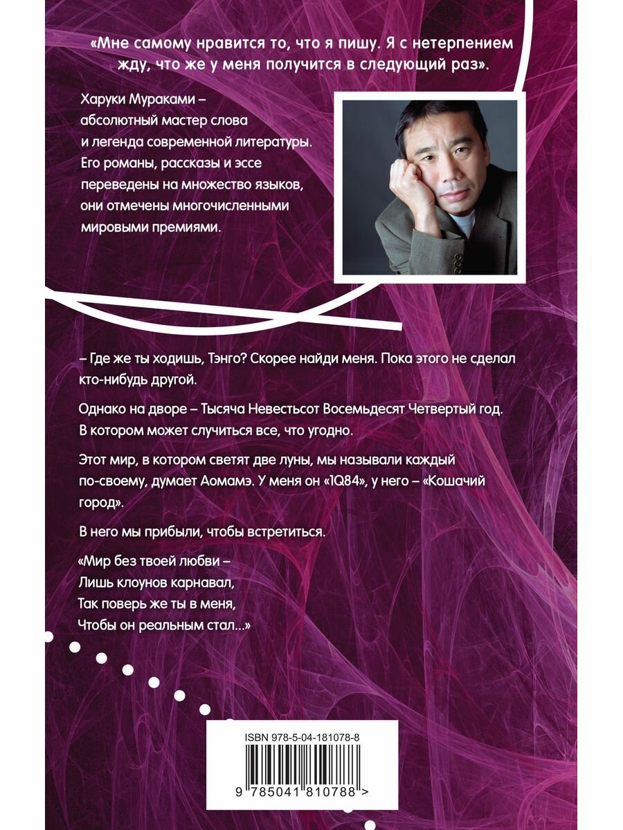 Главная литературная сенсация нового века, «магнум опус прославленного мастера» и «обязательное чтение для любого, кто хочет разобраться в японской культуре наших дней», по выражению критиков. Действие книги происходит не столько в тысяча девятьсот восемьдесят четвертом году, сколько в тысяча невестьсот восемьдесят четвертом, в мире, где некоторые видят на небе две луны, где ключом к вечной любви служит Симфониетта Яначека, где полицейских после всколыхнувшей всю страну перестрелки с сектантами перевооружили автоматическими пистолетами взамен револьверов, где LittlePeople — Маленький Народец — выходит изо рта мертвой козы и плетет Воздушный Кокон.