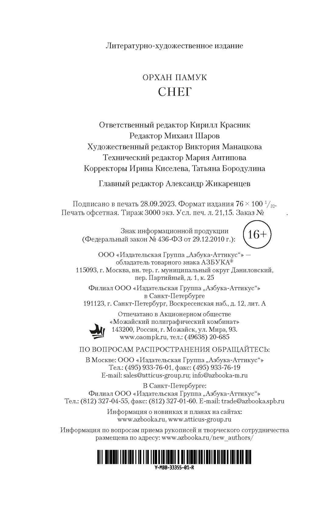 Книга: Снег (Памук Орхан); Азбука, 2023