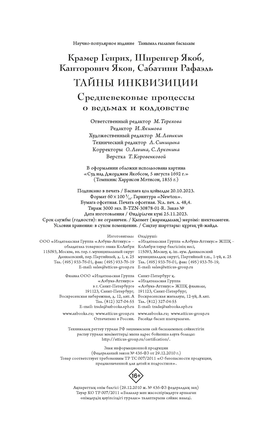 Тайны инквизиции: средневековые процессы о ведьмах и колдовстве (Шпренгер Якоб, Крамер Генрих, Канторович Яков Абрамович, Сабатини Рафаэль); КоЛибри, 2023