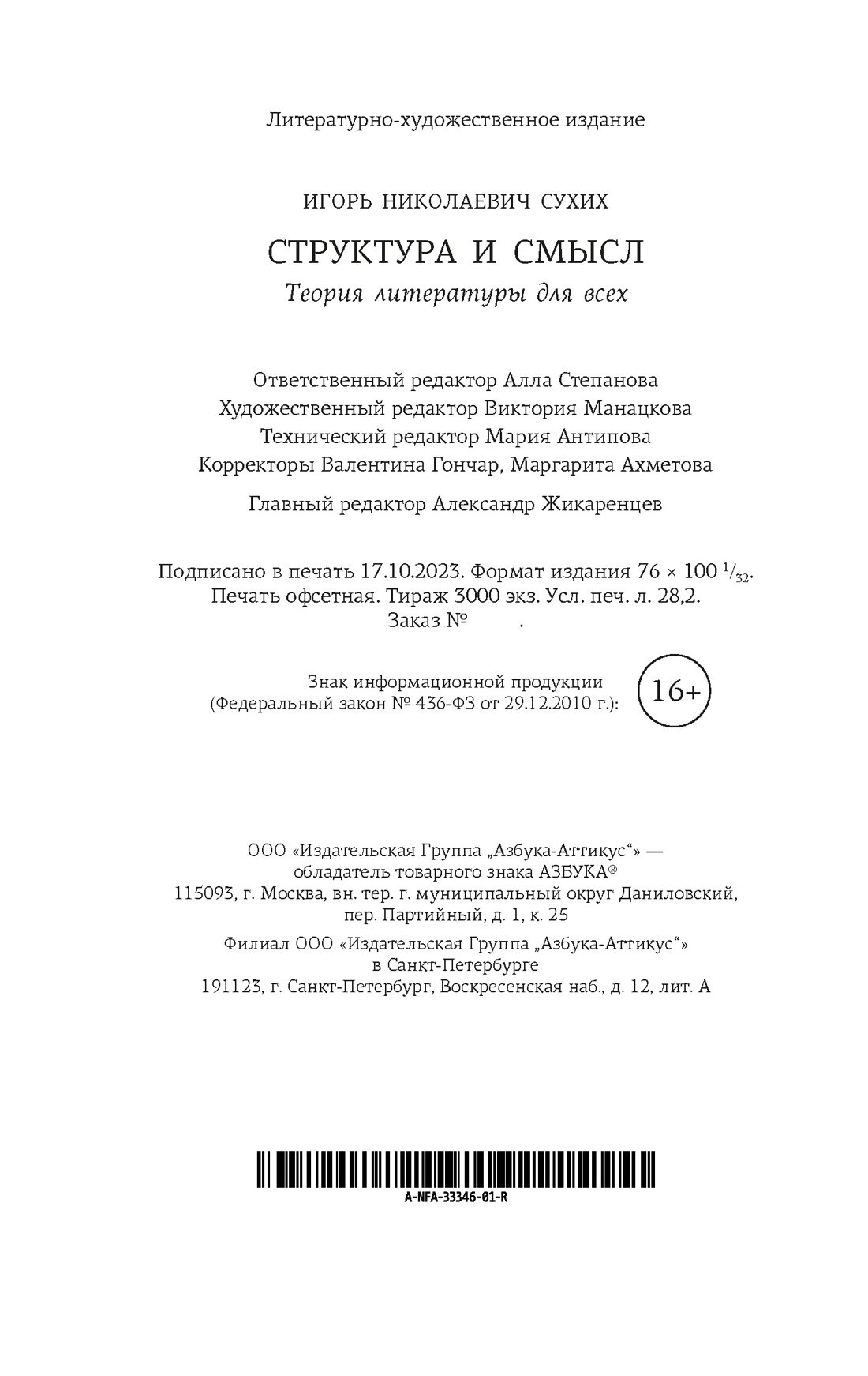 Структура и смысл: Теория литературы для всех (Сухих Игорь Николаевич); Азбука, 2023