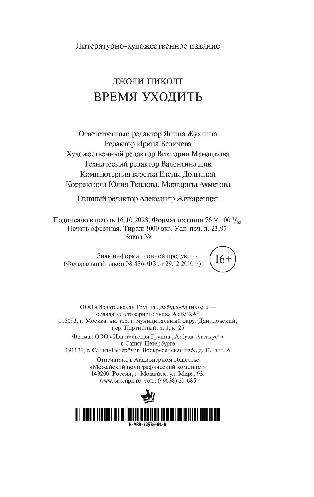 Книга: Время уходить (Пиколт Джоди); Азбука, 2023