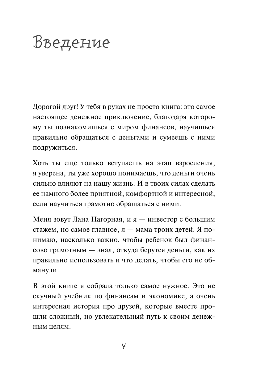 Эта книга объясняет, как начать зарабатывать деньги, если до совершеннолетия еще ой как далеко. Она учит финансовой грамотности, рассказывает, что такое инвестиции и криптовалюта, помогает принимать ответственные решения. А еще – держит в напряжении до последней страницы: удастся или нет каждому из друзей собрать нужное количество денег и исполнить свою мечту – не узнаете, пока не доберетесь до финала.