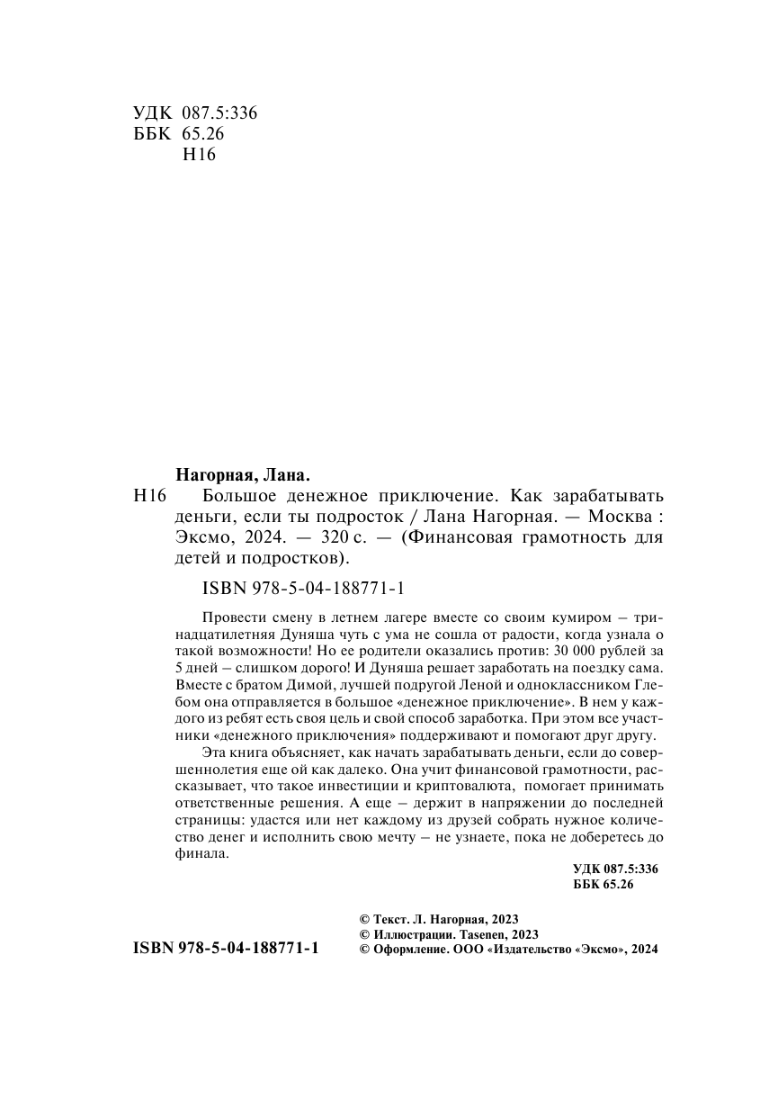 Большое денежное приключение. Как зарабатывать деньги если ты подросток (Нагорная Лана); ООО "Издательство "Эксмо", 2023