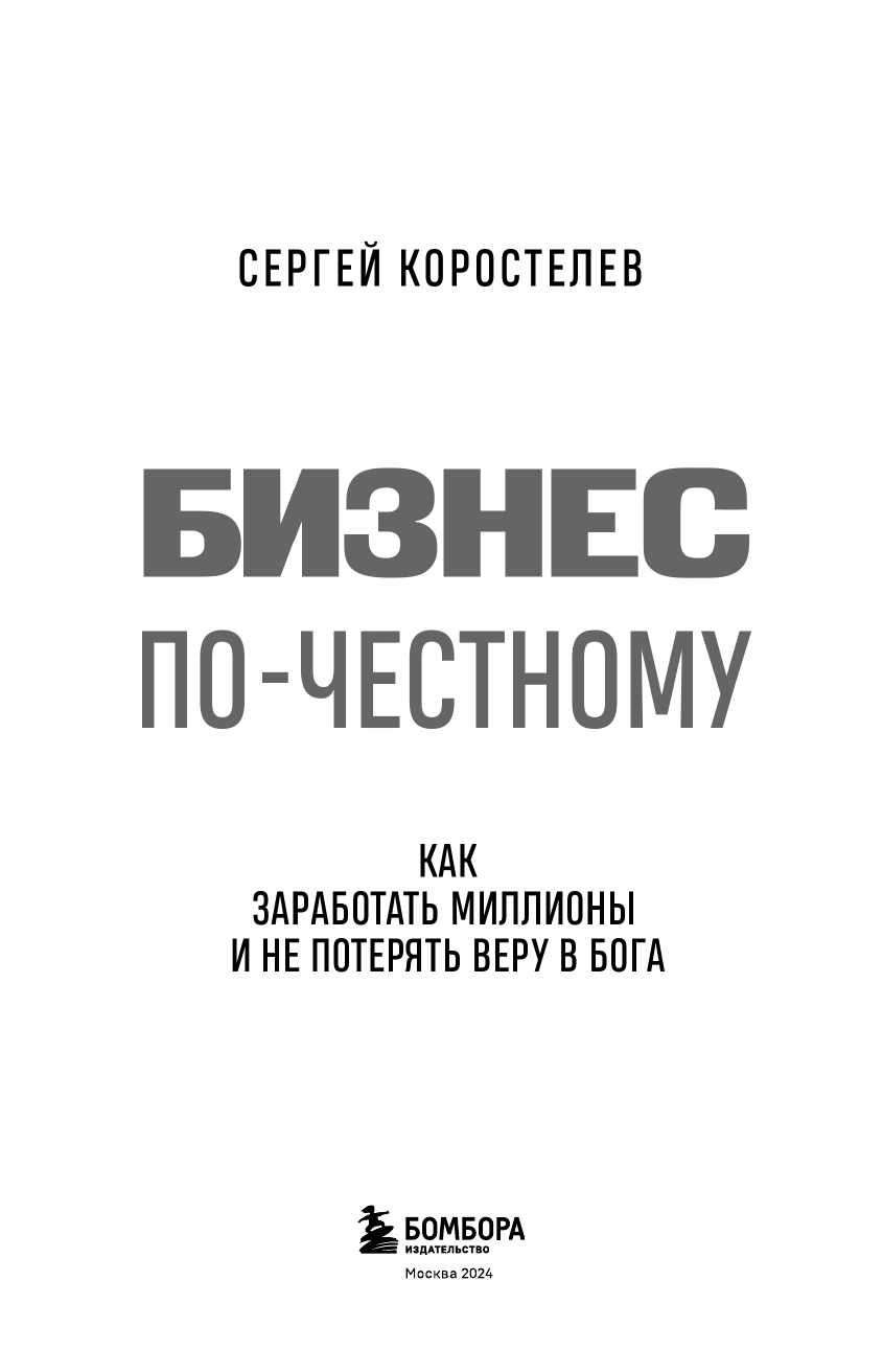 Бизнес по-честному. Как заработать миллионы и не потерять веру в Бога (Сергей Анатольевич Коростелев); Эксмо, 2023
