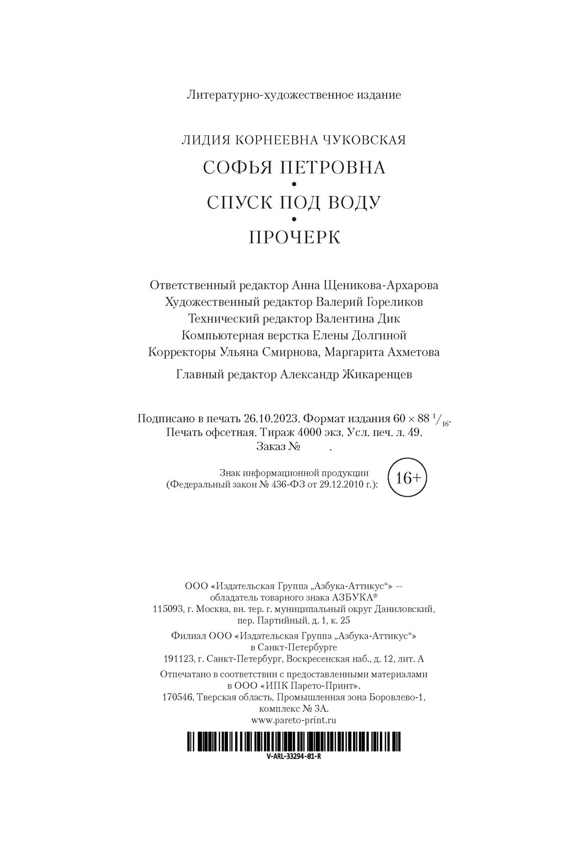 Софья Петровна. Спуск под воду. Прочерк (Чуковская Лидия Корнеевна); Азбука Издательство, 2024
