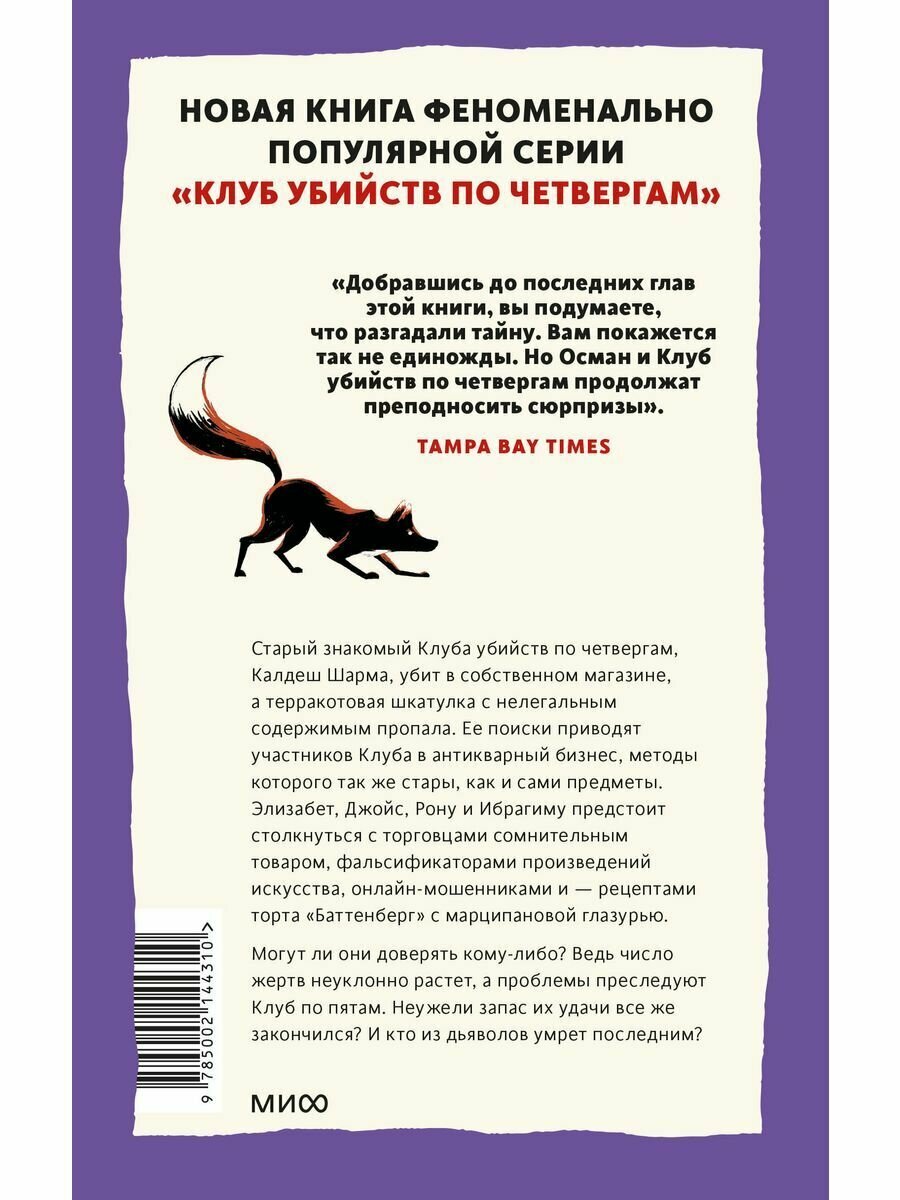 Их старый знакомый, Калдеш Шарма, убит в собственном магазине, а терракотовая шкатулка, в которую еще шесть тысяч лет назад запирали дьяволов, пропала. Поиски Клуба приводят их в антикварный бизнес, методы которого так же стары, как и сами предметы. Элизабет, Джойс, Рону и Ибрагиму предстоит столкнуться с торговцами сомнительным товаром, фальсификаторами произведений искусства, онлайн-мошенниками и — рецептами торта "Баттенберг" с марципановой глазурью. Могут ли они доверять кому-либо?