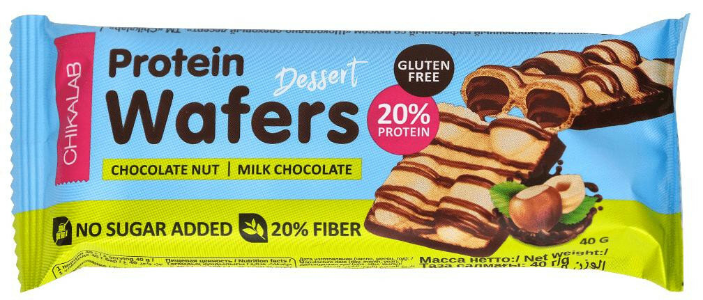 Оригинальная форма из восьми хрустящих подушечек позволит шаг за шагом насладиться сливочной или шоколадной кремововой начинкой с дробленным фундуком и,конечно,натуральным молочным шоколадом. Вафли CHIKALAB содержат 8 гр. концентрированного белка и сделаны по специальной технологии без глютена и без добавленного сахара.Всего один десерт заботится о чистоте кожи,стройности талии и хорошем настоении.