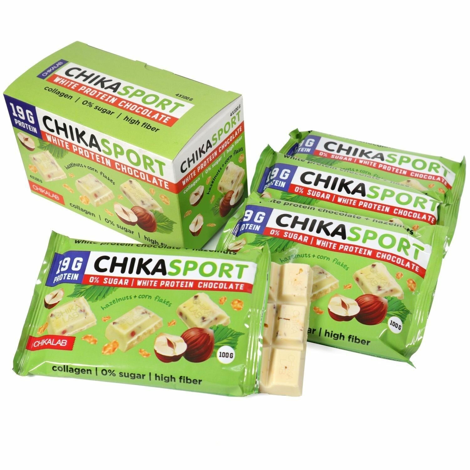 Шоколад белый с фундуком и кукурузными чипсами ChikaLab 100г ООО Фитнес Фуд (2664470)