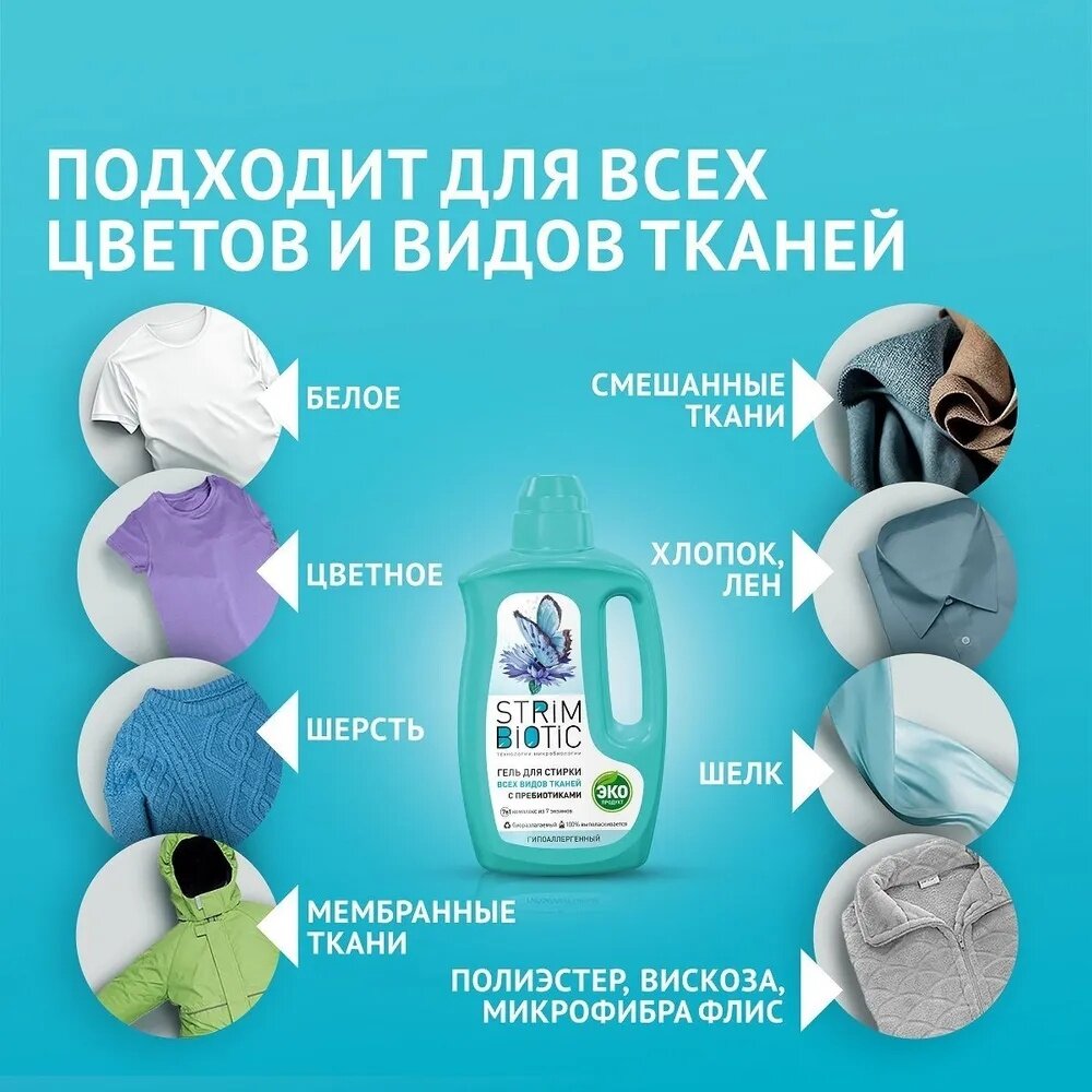 Гель StrimBiotic для стирки всех видов тканей 1000мл