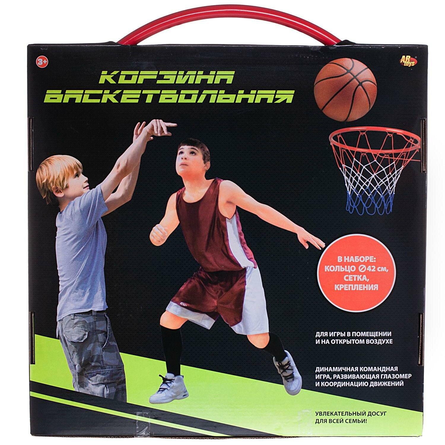 Баскетбольная корзина ABtoys c сеткой и креплениями диаметр корзины 42 см