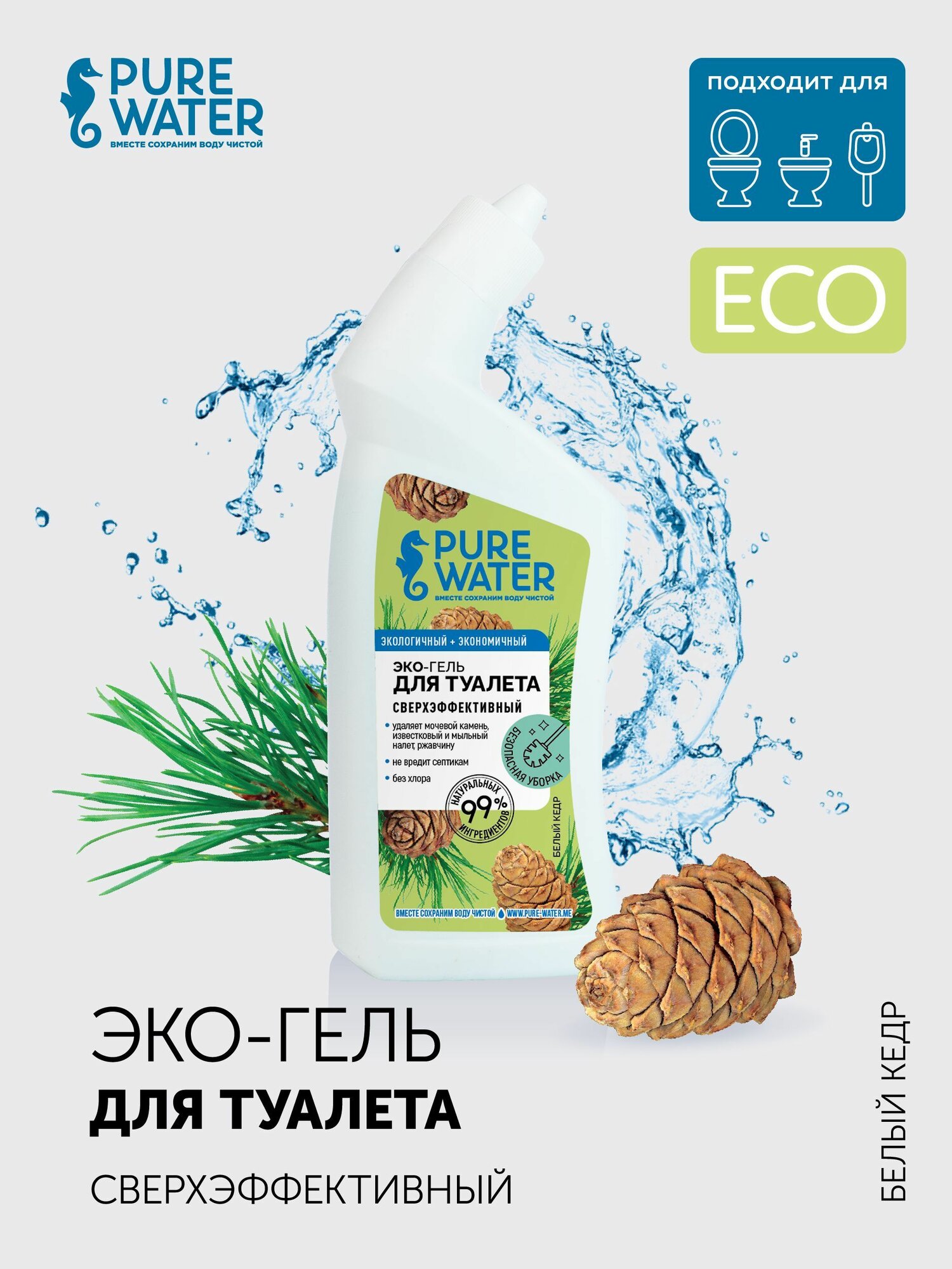 Гель для туалета Белый кедр PURE WATER 500 мл