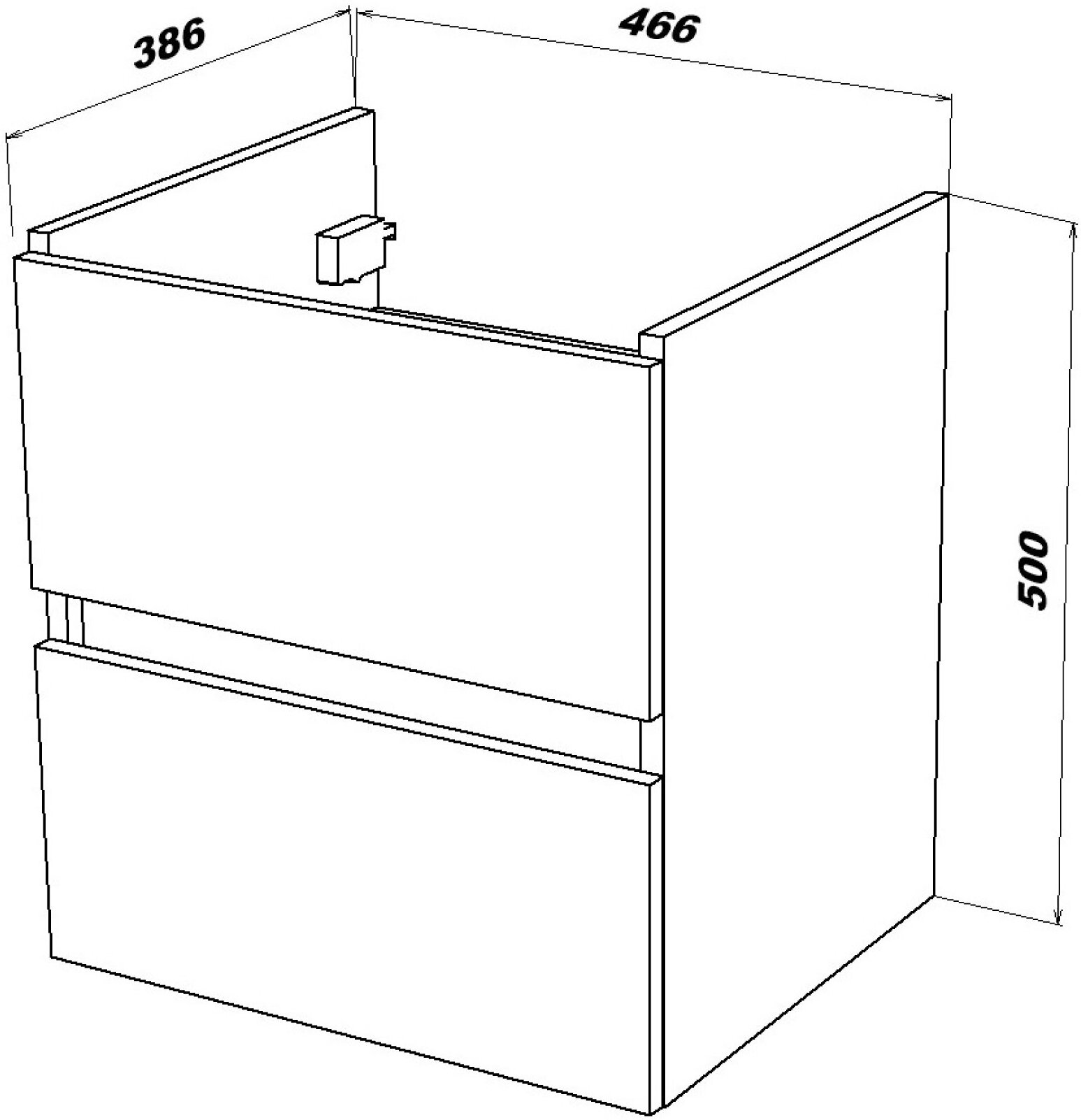 - Габариты корпуса тумбы (ШхВхГ): 466х500х386 мм.