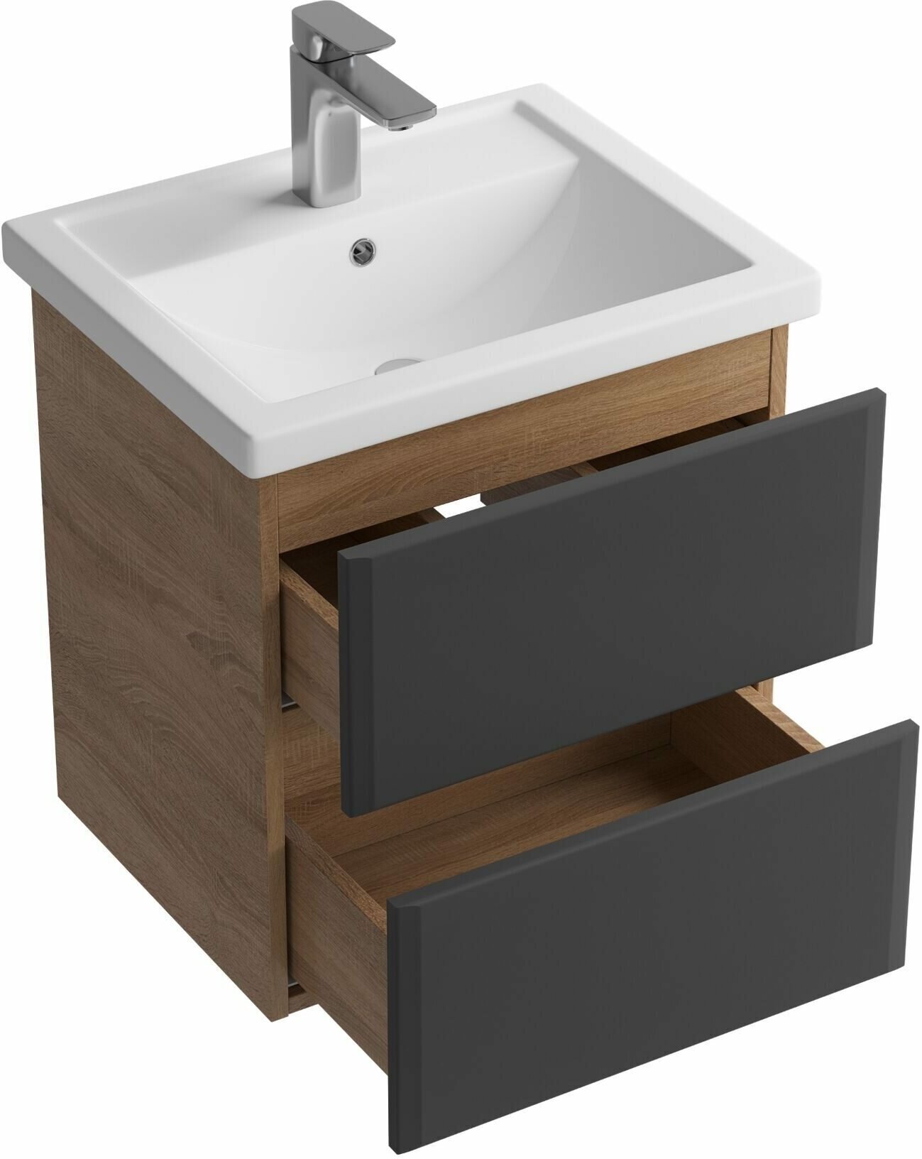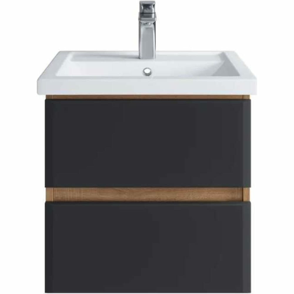 Тумба под раковину Sanstar Инфинити 50 390.1-1.4.1. подвесная Графит софт Дуб сонома светлый