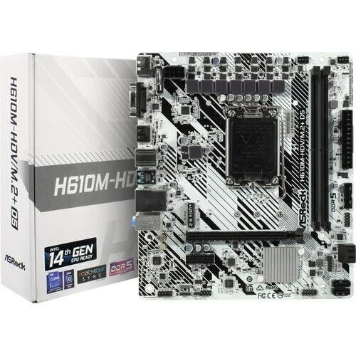 Материнская плата Asrock H610M-HDV/M.2+ D5 является отличным выбором для сборки современных, но бюджетных и сбалансированных систем. Она идеально подходит для создания производительного офисного ПК, домашнего мультимедийного центра или игрового компьютера начального уровня, способного справиться с популярными онлайн-играми и проектами прошлых лет на комфортных настройках. Эта плата станет надежной основой для процессоров Intel Core i3 и Core i5 12-го, 13-го и 14-го поколений без индекса ""K"", обеспечивая стабильную работу без переплат за избыточные функции.Чипсет, сокет и форм-фактор