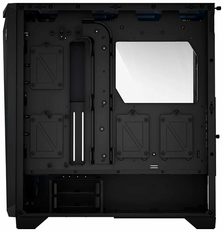 Корпус хороший. Количество посадочных мест для различных вентиляторов впечатляет, достаточно пространства и для радиаторов СЖО различных размеров. Уделено внимание удобству — как сборки компьютера, так и его последующего обслуживания. Штатный контроллер позволяет управлять и декоративной подсветкой (кнопкой или с помощью ПО), и работой вентиляторов. Придраться можно разве что к некоторой простоте внешнего оформления.